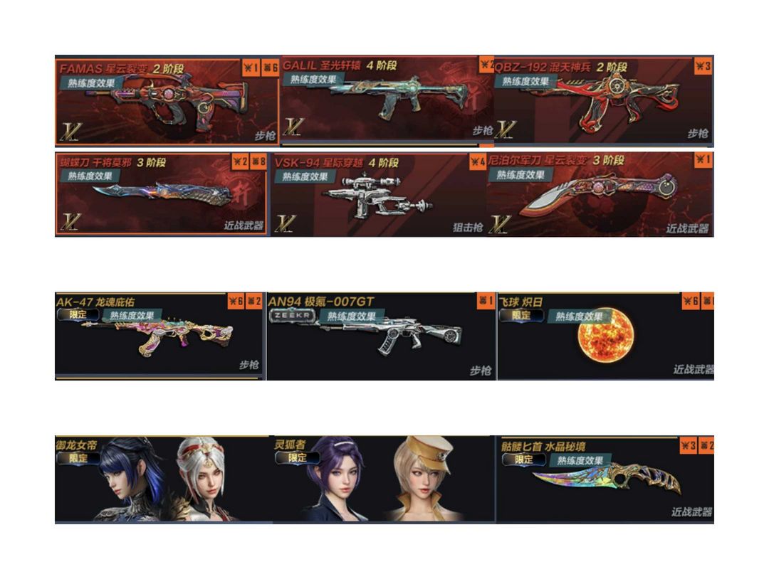 禁排❤️四神话⭐️神话法玛斯⚡️女帝⚡️龙魂AK⭐️极氪007⚡️水晶匕首飞球炽日⚡️灵狐者⚡️