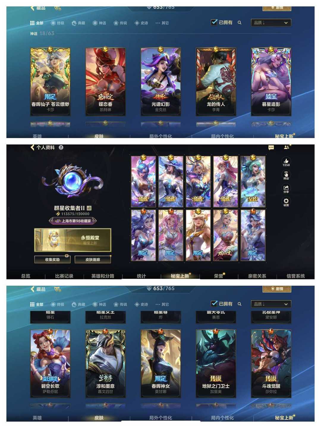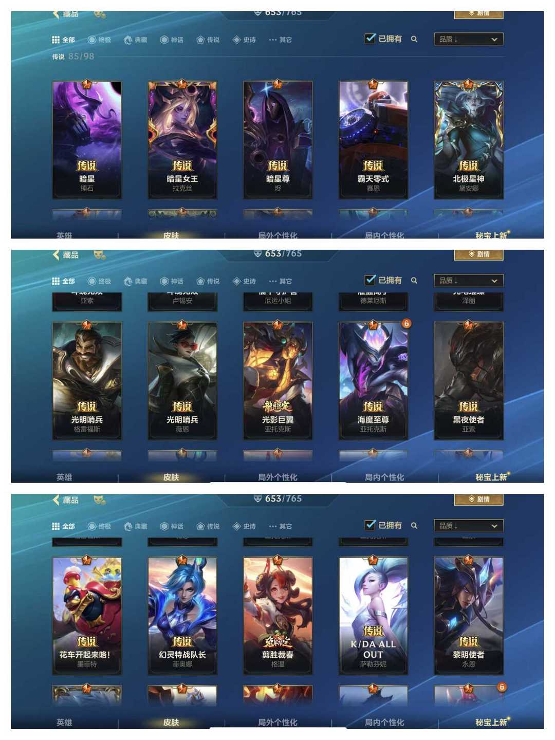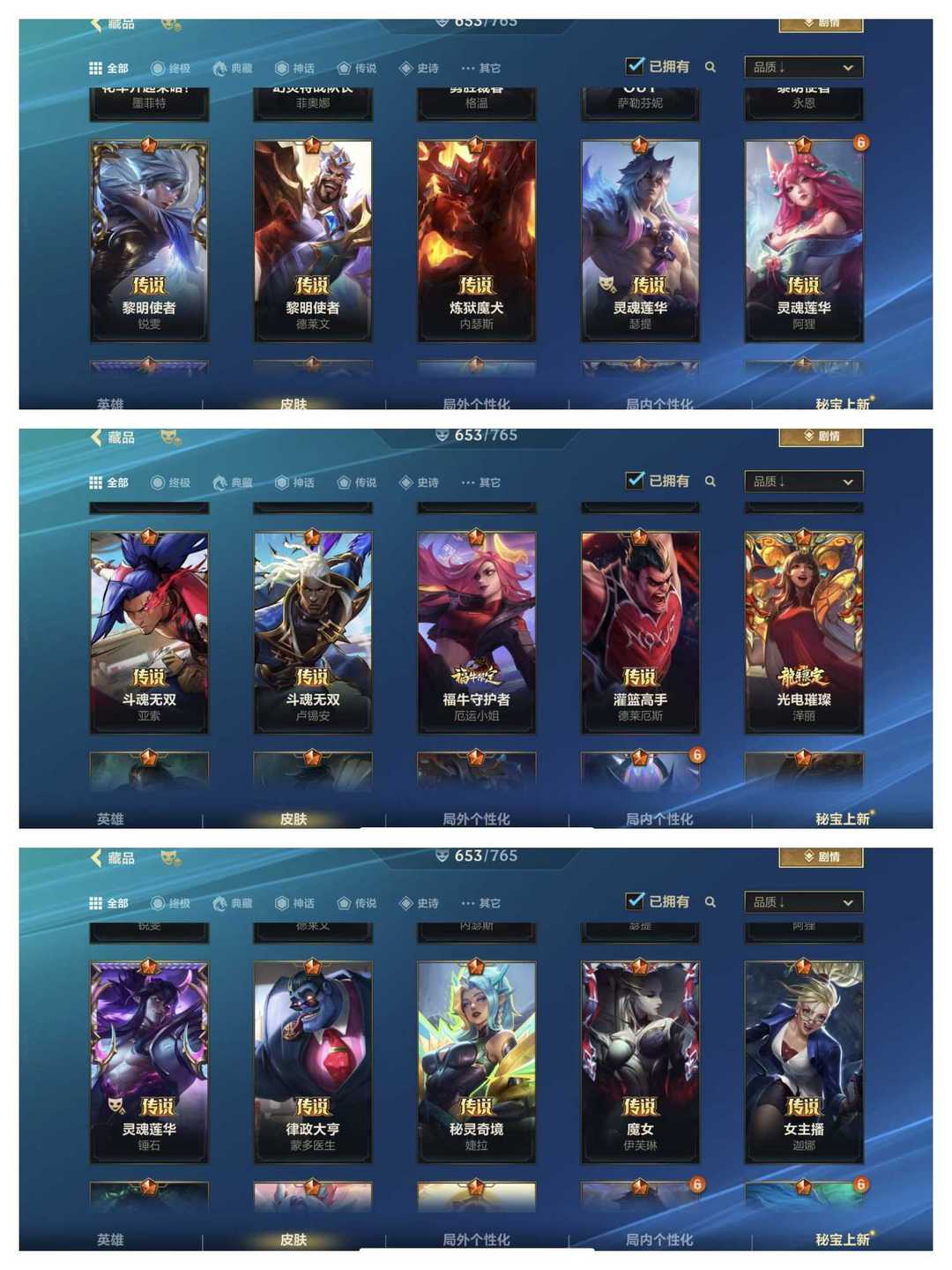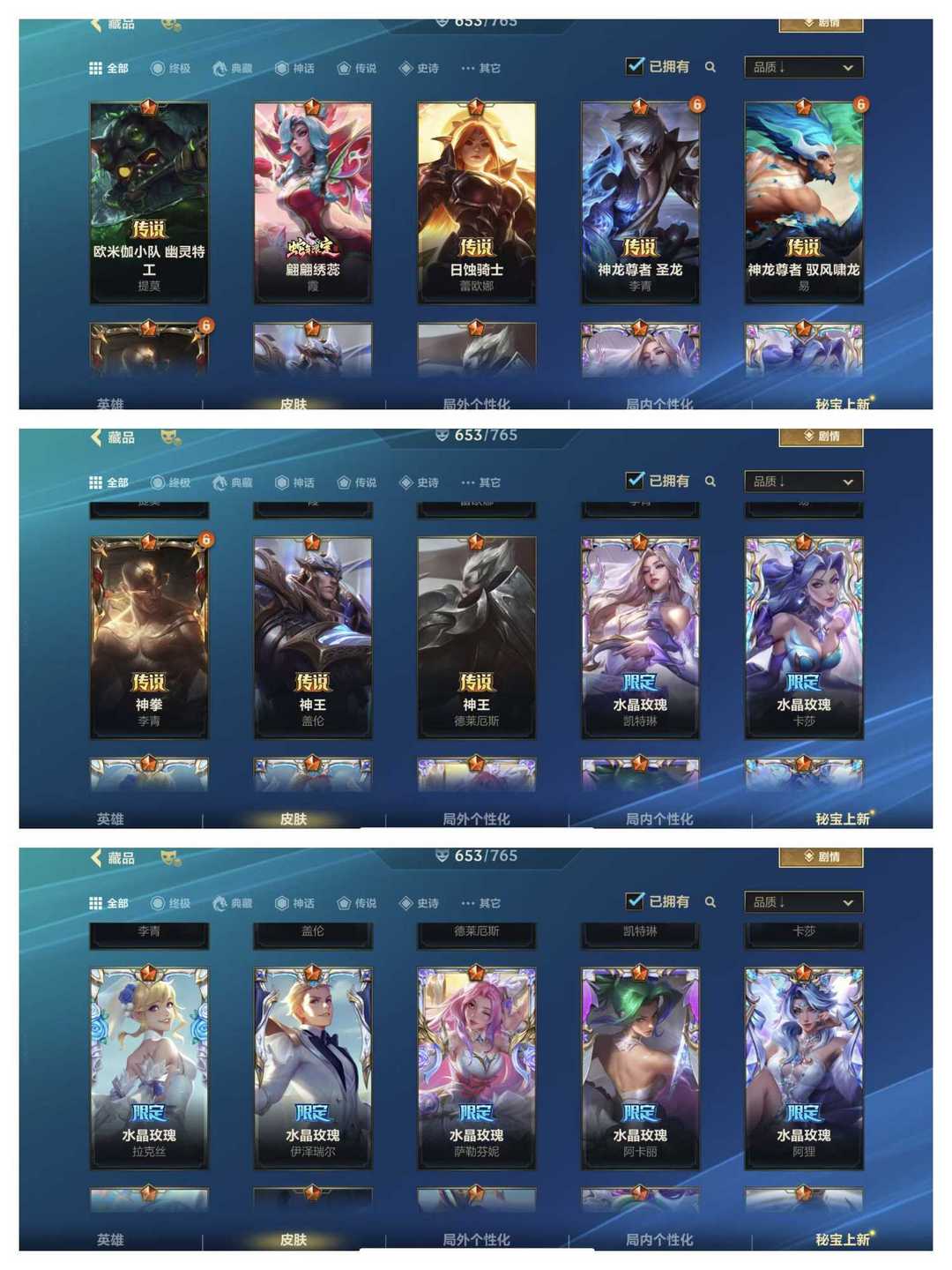 【魂】653皮铂金一可排✨全套水晶玫瑰✨至臻格温娜美永恩霞拉克丝女警✨几乎满传说丨挂机必拉黑