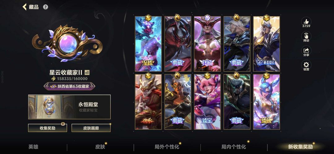 16万收藏❤️可排位近全皮718皮❤️终极永恩❤️粉名双时空旗❤️击杀播报拖尾全❤️恶意挂机别来