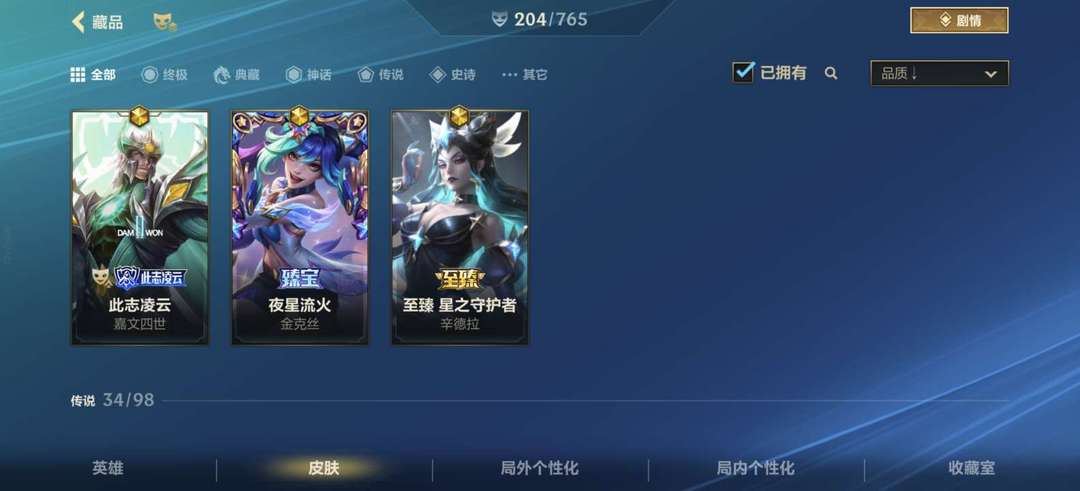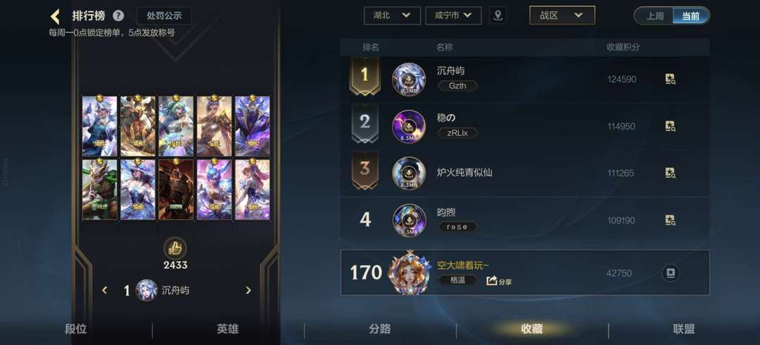全英雄✨/3神话✨/34传说✨/108史诗✨,战区收藏170名,4w收藏分,满信誉分