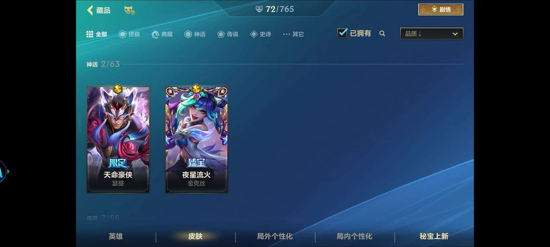 2神话7传说31史诗4英雄自选箱4万5精粹可买英雄