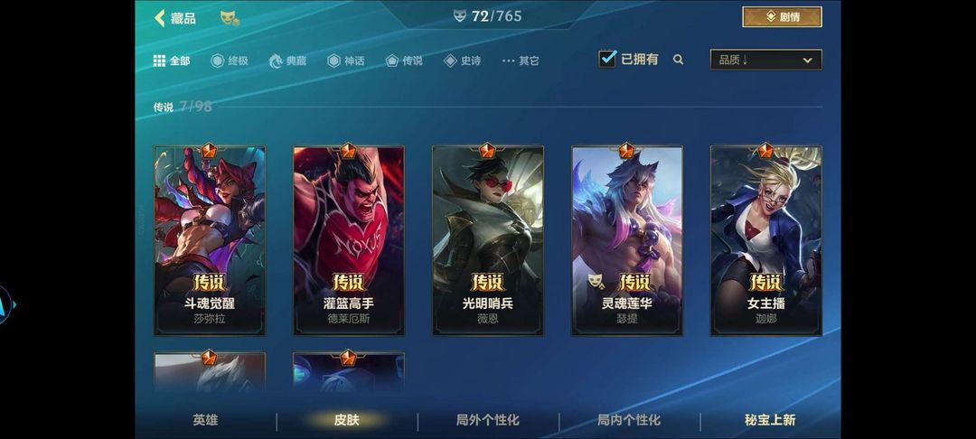 装备描述:莎弥拉斗魂无双 诺手神王灌篮高手 腕豪灵魂莲华天命豪侠 源计划阿卡丽亚索卢锡安艾希 霸天剑魔狮子狗龙王