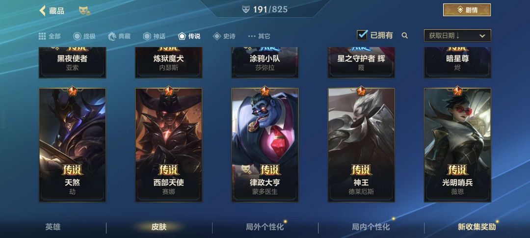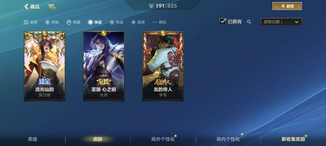 限制: 租号10次及以上 |装备描述:3个神话 15个传说皮 83个史诗皮