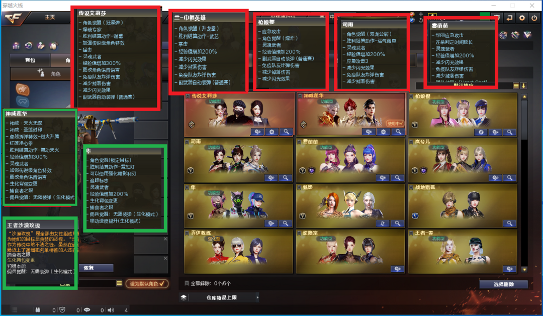 装备描述:排位:可以-----------生化全装(生化背包、可以查看生化僵尸血量)无需换弹、6烈、6盘龙、6炼狱、异变清道夫-小人枪、双面神、KAC狂怒咆哮、异变清道夫、斯泰尔枪娘暗刃、毒蜂、死亡之眼、MAC涂鸦、2把炽芒蝶刃、4个生化减速雷、超级对讲机、全部弹匣、、、、、爆破四防:幻神9皮+音效(EP荣耀世冠、24AG冠军、星耀、冠军之幻、白鲨、23白鲨、周瑜、青鹤、黄忠)、传说灵眸、98K星神带音效、王者风神、、、、EP荣耀柯尔特、USP雷暴王者、3个USP神工天巧、4个COP幻灵、竞技荣光柯尔特、冠军之特、23白鲨柯尔特、、、、传说夜影、八面凌龙、白虎玄豹、FAMAS G2-天戎、QBZ天罚、G36C幻影、白虎、白虎之魄、、、、幻神音效、星神音效、裁决音效、黑龙音效、、极光音效、蔷薇音效、白虎音效、毁灭音效、雷神音效、黑骑士音效、、、、生化人物(神威莲华、隼、王者沙漠玫瑰)、爆破四防人物很多