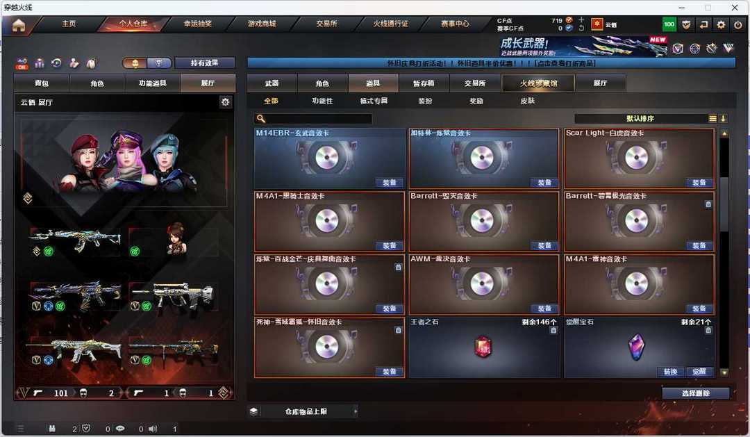 限制: 撤单率<100%才可租用此帐号装备描述:兄弟们生化爆破全装号了热门武器齐全。 禁止使用第三方软件外挂、鼠标宏、驱动发现立马封杀租号玩账户,严重导致封号大于31天以上店铺将协助号主起诉追究赔偿,文明游戏维护美好游戏环境祝各位老板游戏玩的开心,生活过的幸福。