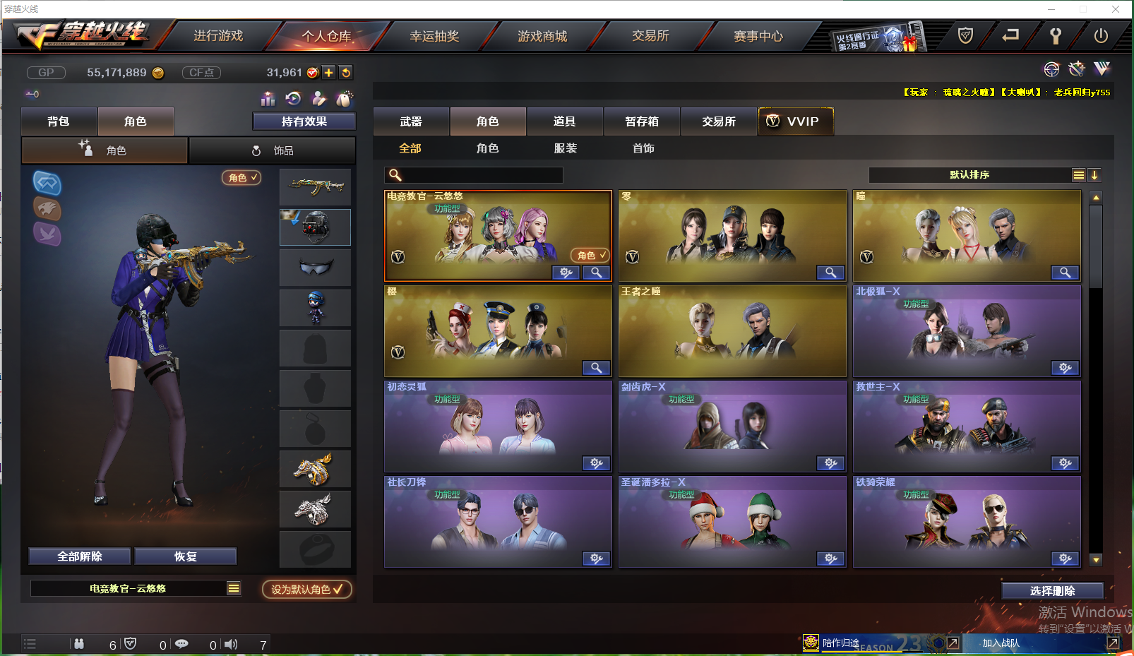 限制: 租号1次及以上 | 撤单率<100%才可租用此帐号装备描述:140V竞技荣光套柯尔特手枪满配qbz传说辉光六盘六烈荣耀雷神墨子云悠悠电竞教官基础v全套