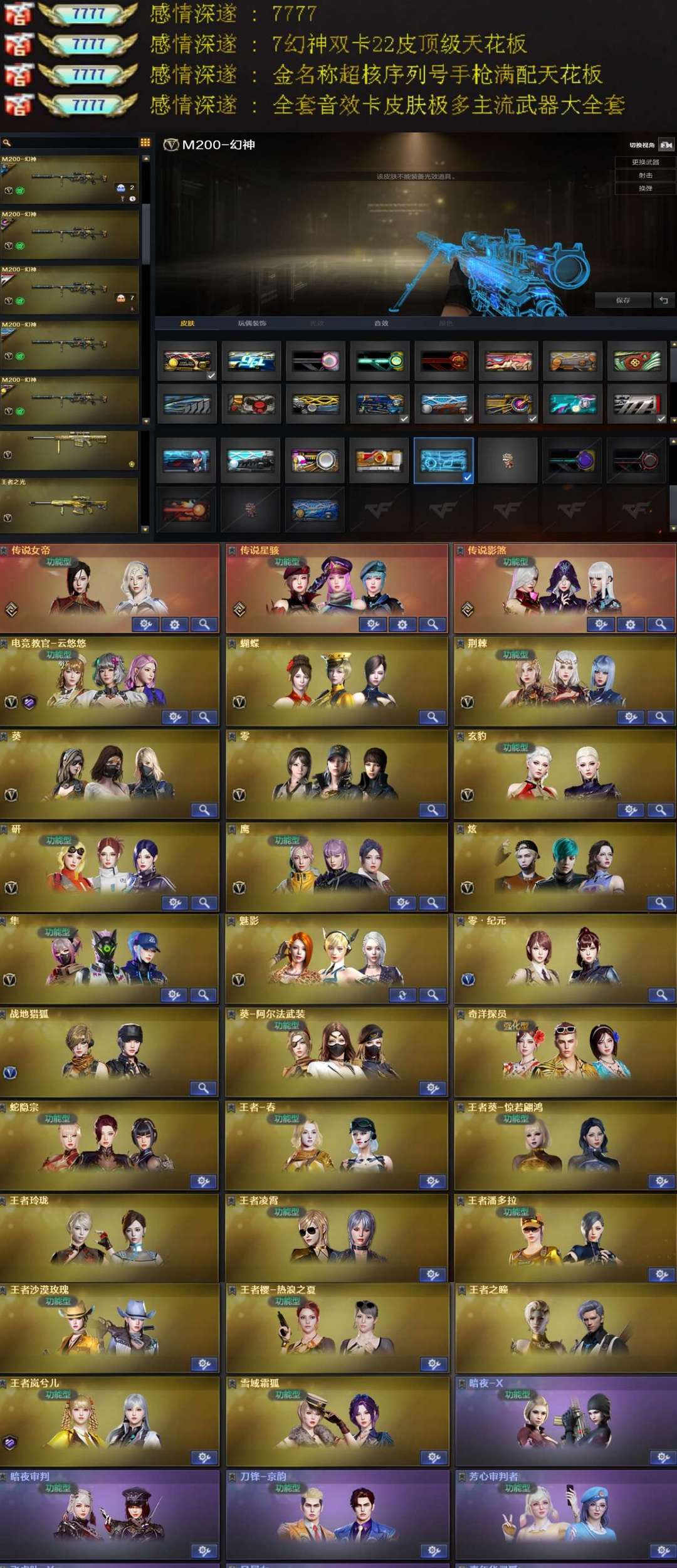 女帝 序列号7777 5套幻兽 7幻神双卡22皮 光海夜岚 满配九霄圣角 2柯尔特百战金芒 新活动