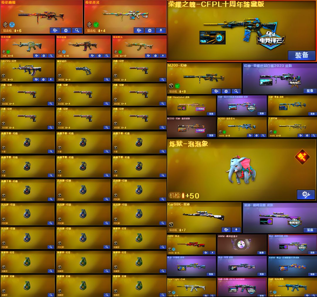 7套幻兽⭐幽瞳⭐十周年至臻⭐泡泡象♥副武器满配♥基础V全♥3蝴蝶刀♥爆破生化全部毕业