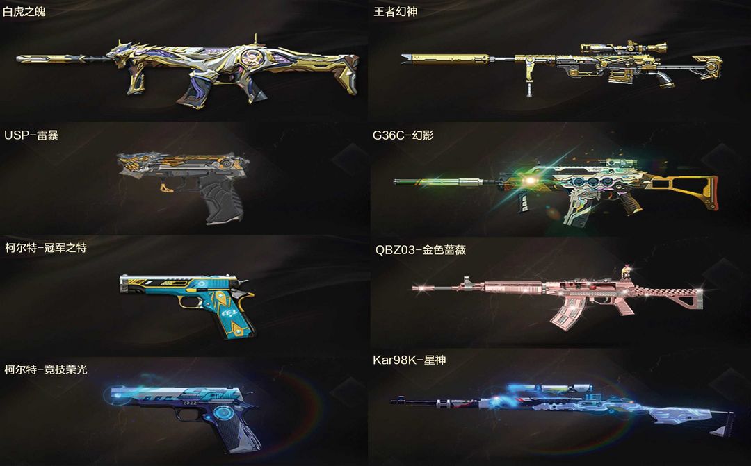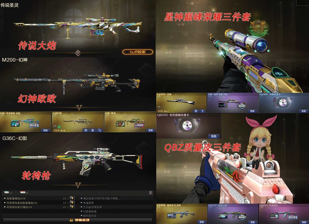 传说圣灵幻神欧欧祥龙冠军之特❤️星神巅峰荣耀+音效卡❤️QBZ蔷薇白虎之魄g36c幻影❤️四防云悠悠