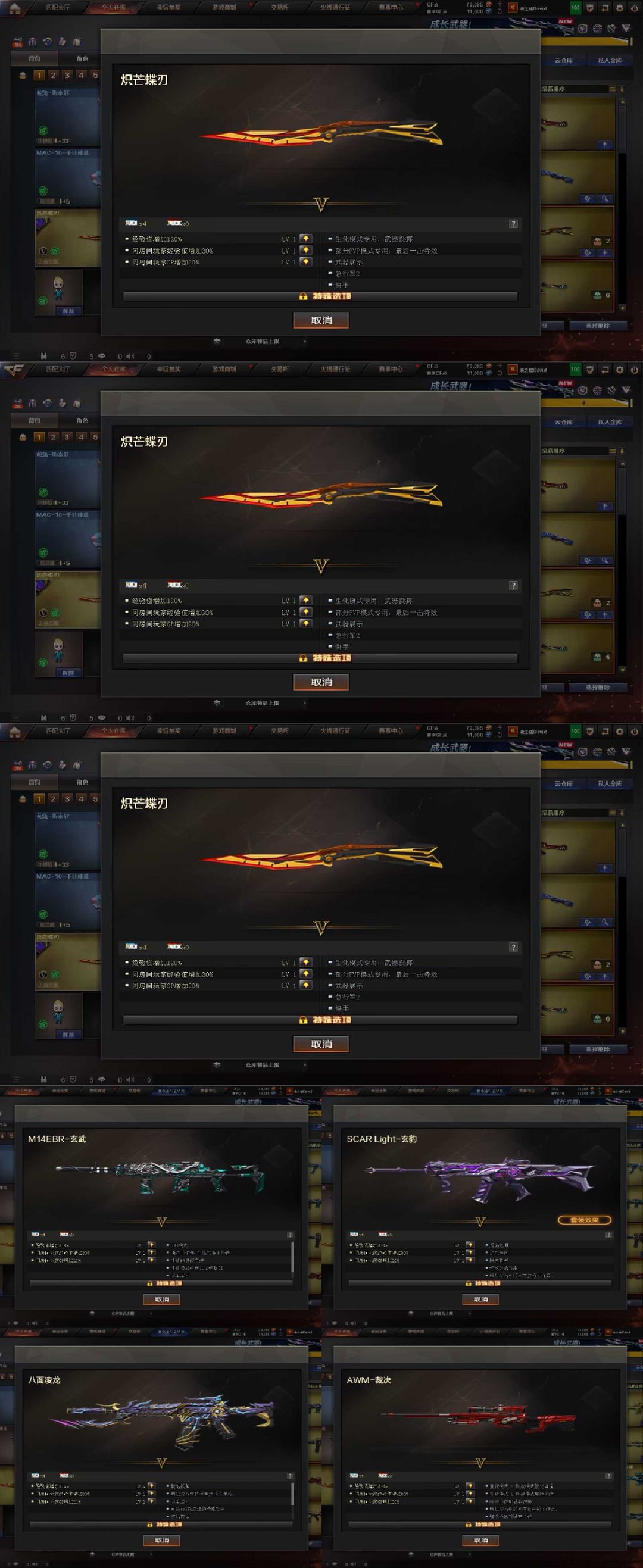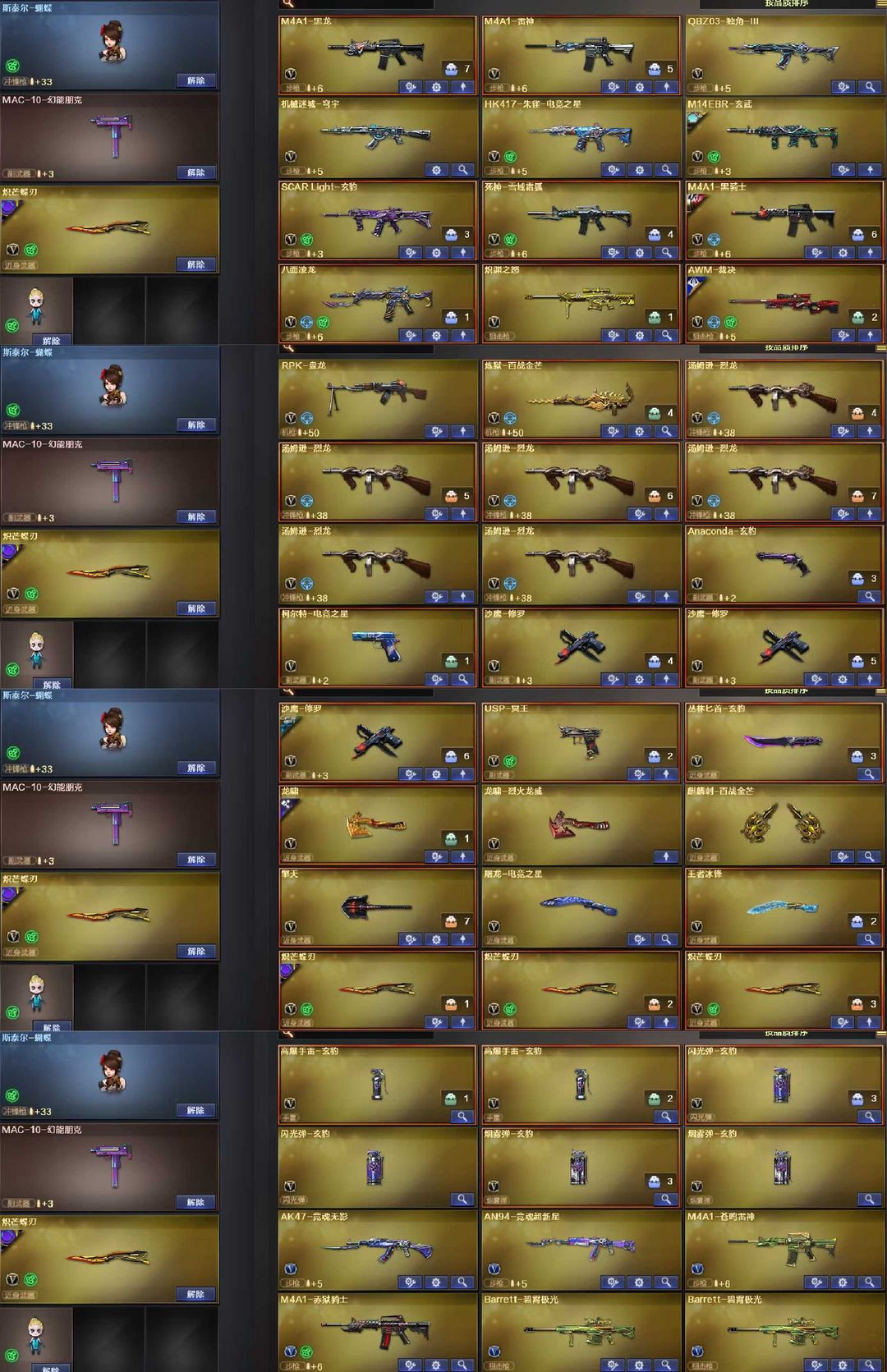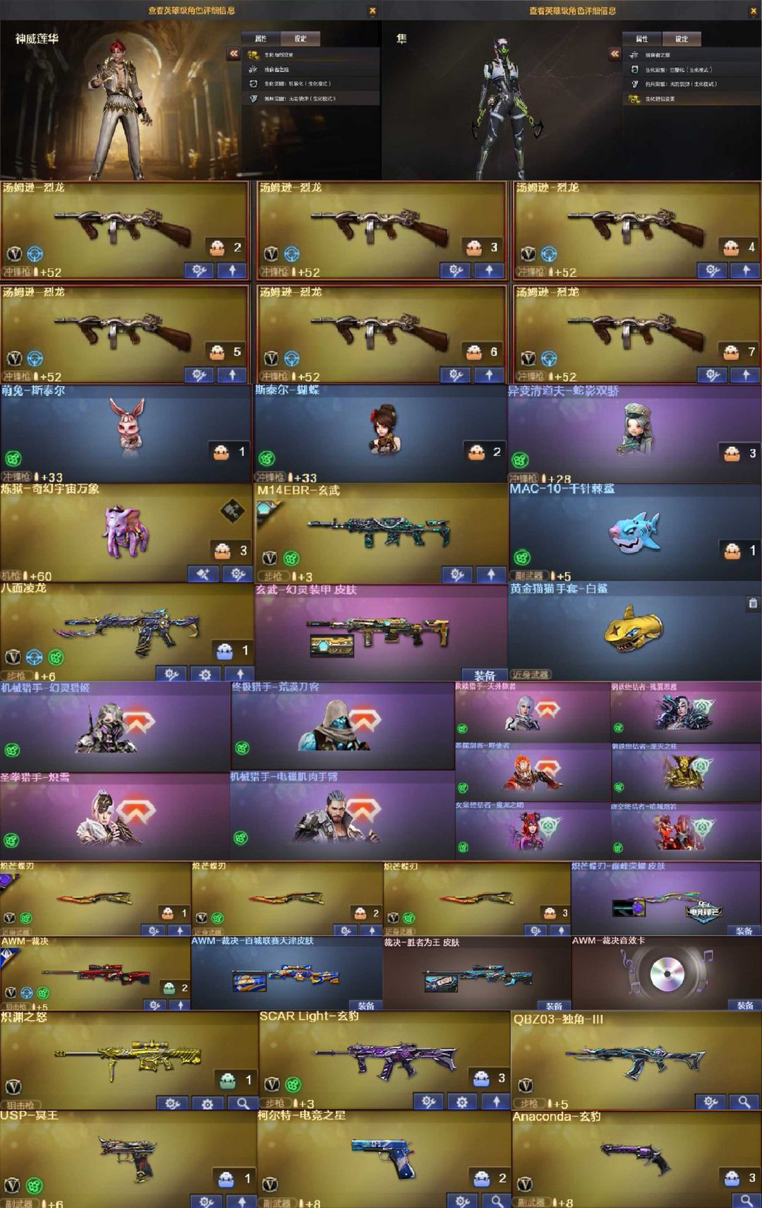 神威莲华炼狱泡泡象隼6烈萌兔双蝴蝶蛇影双娇3蝴蝶刀Mac鲨鱼玄武八面凌龙猎手全皮玄豹套冥王裁决带皮卡