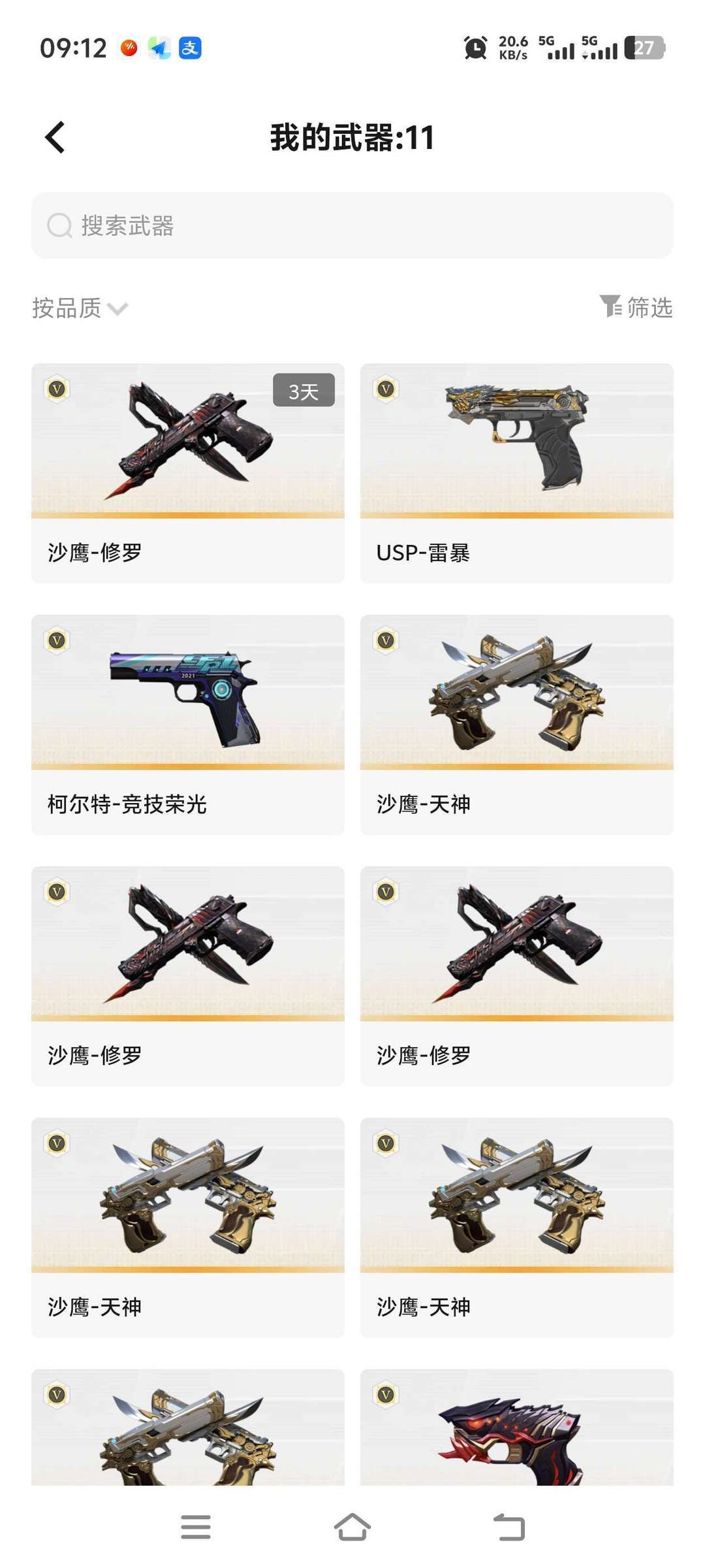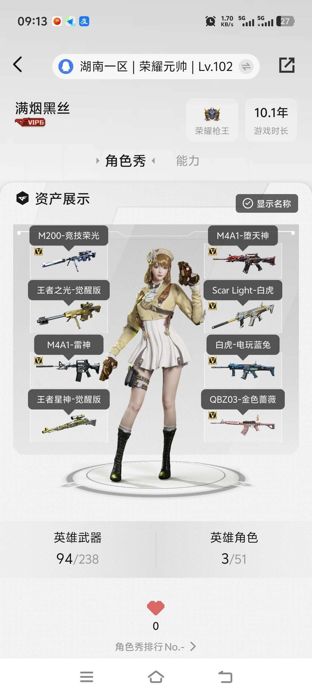 6烈+6盘+6手枪+白虎qbz。毁灭,极光,雷神,火麒麟,裁决音效卡。