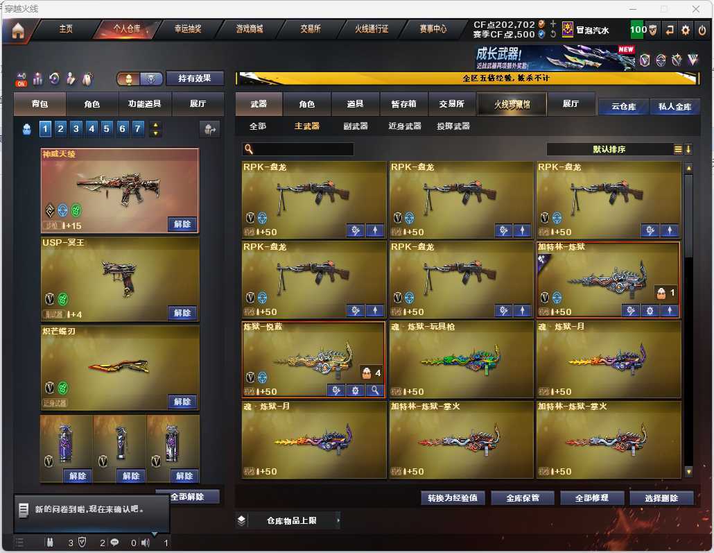 火麒麟黑武士无影雷神幻神白虎星神金色蔷薇武器齐全
