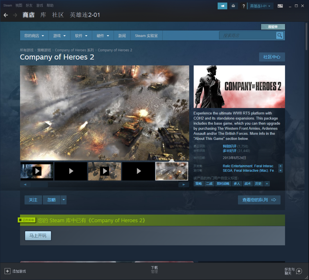 装备描述:《英雄连2-Company of Heroes 2》豪华版-抢先体验游戏!