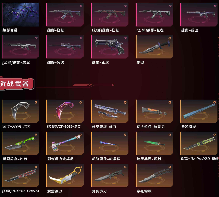 可排位大库存☆VCT爪刀☆RGX☆塑水宗☆双城之战☆混沌序曲☆艾沃莉☆盖亚☆奇点2.0☆各种散件☆炫