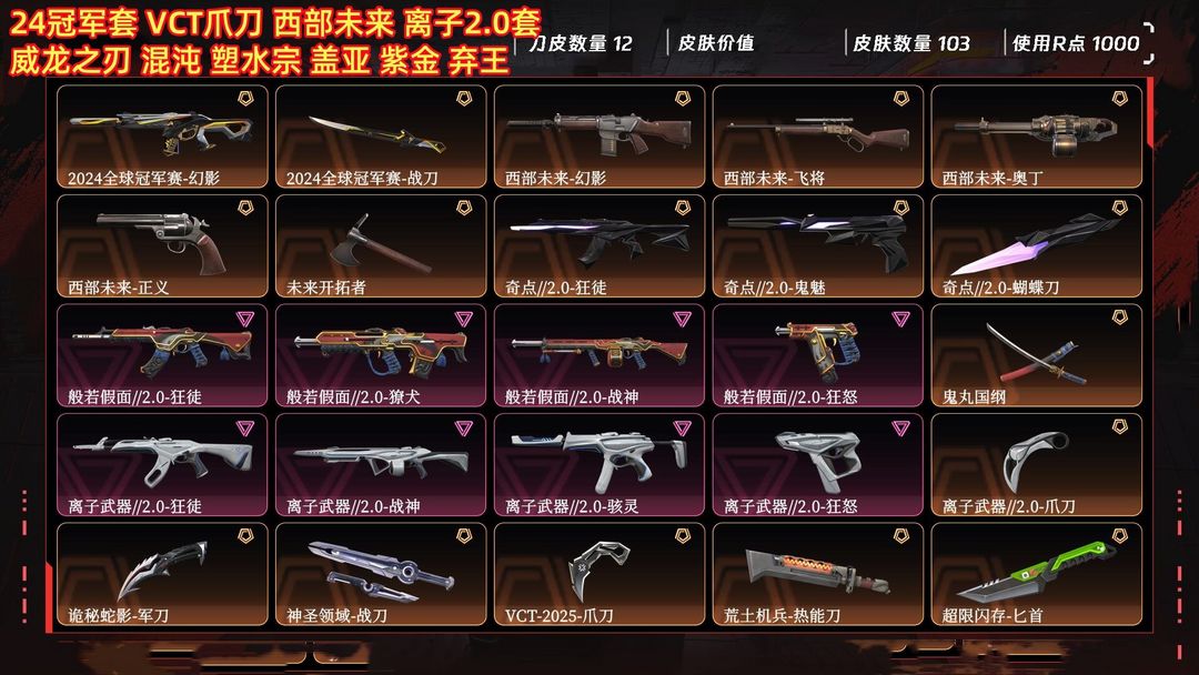 禁排✅VCT爪刀⚡离子2.0套⚡24冠军套⚡西部未来⚡奇点2.0⚡般若2.0⚡混沌塑水宗盖亚