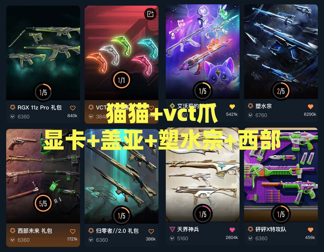 可排✅猫猫梦之翼盖亚显卡塑水宗双城❤️vct爪刀太刀环刃❤️般若西部未来砰砰❤️天界起源vct标配