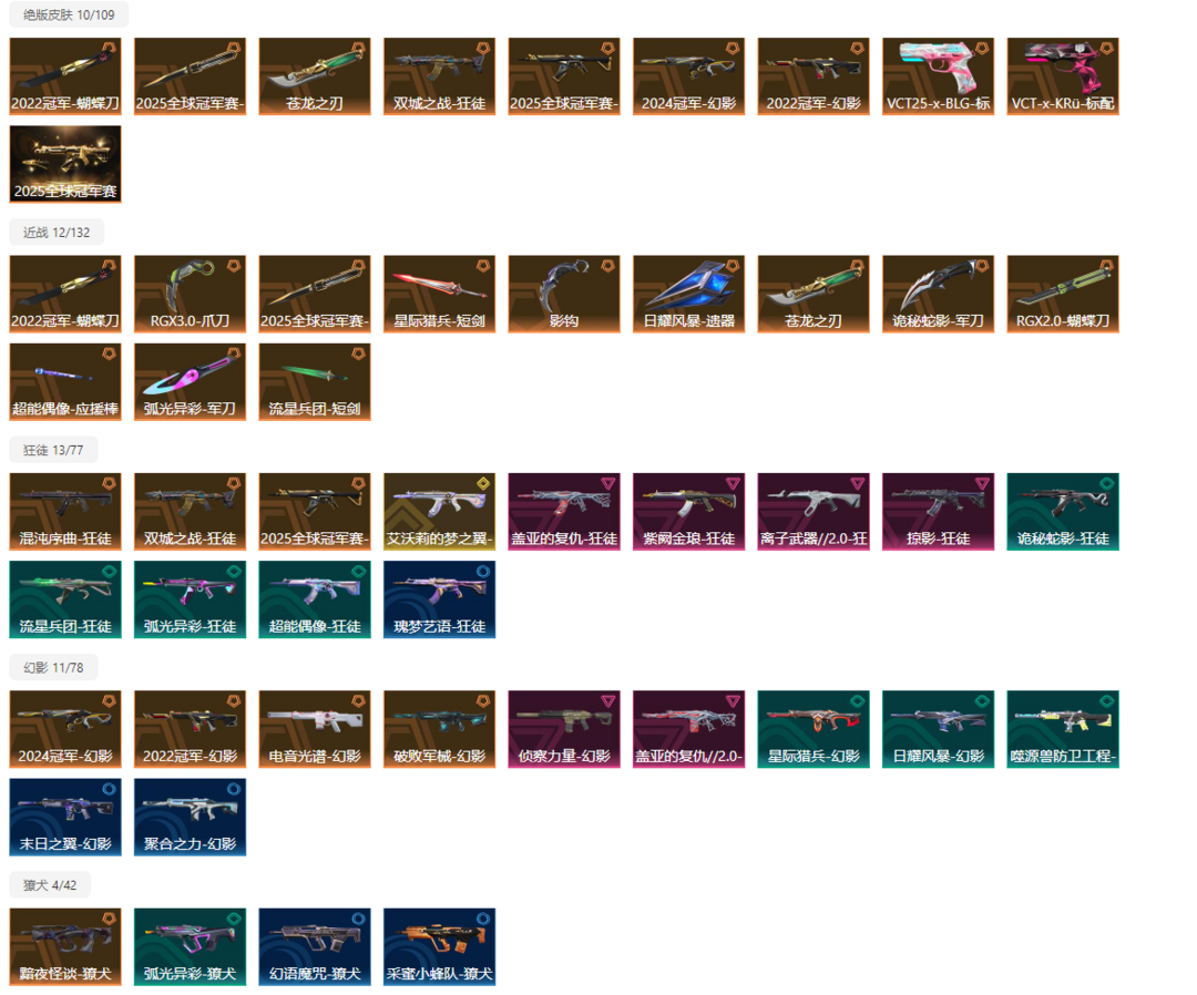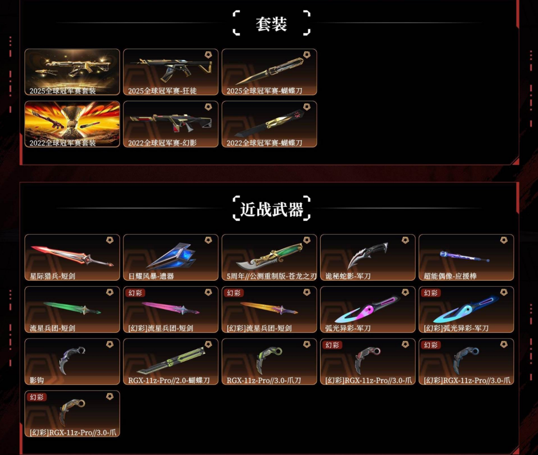 25冠军套22冠军套24冠军⭐14把主战武器⭐4把标配3正义⭐显卡爪影钩苍龙显卡蝴蝶⭐混沌猫咪盖亚