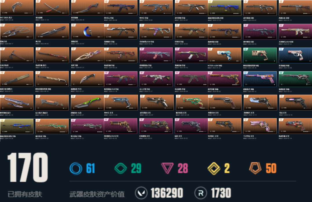 武器皮肤数量:170