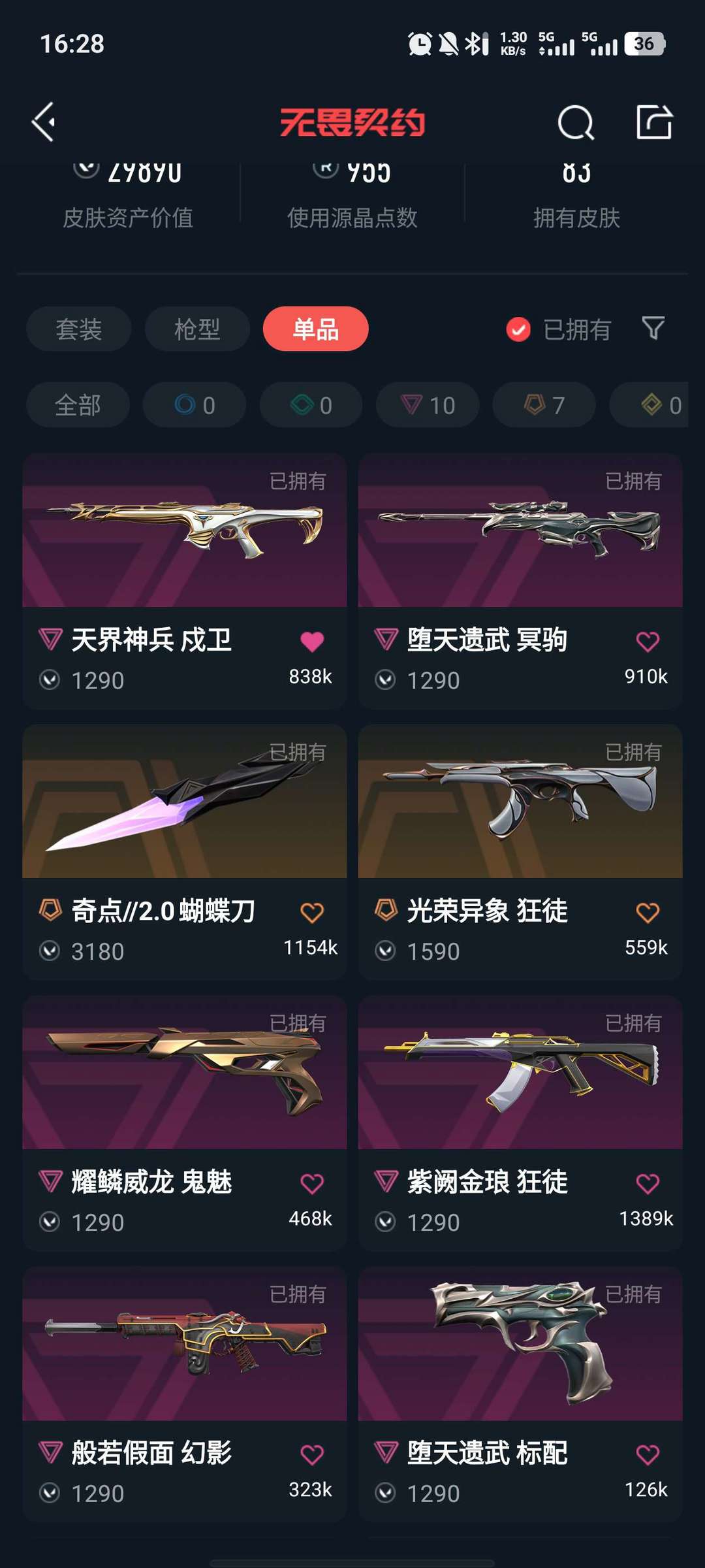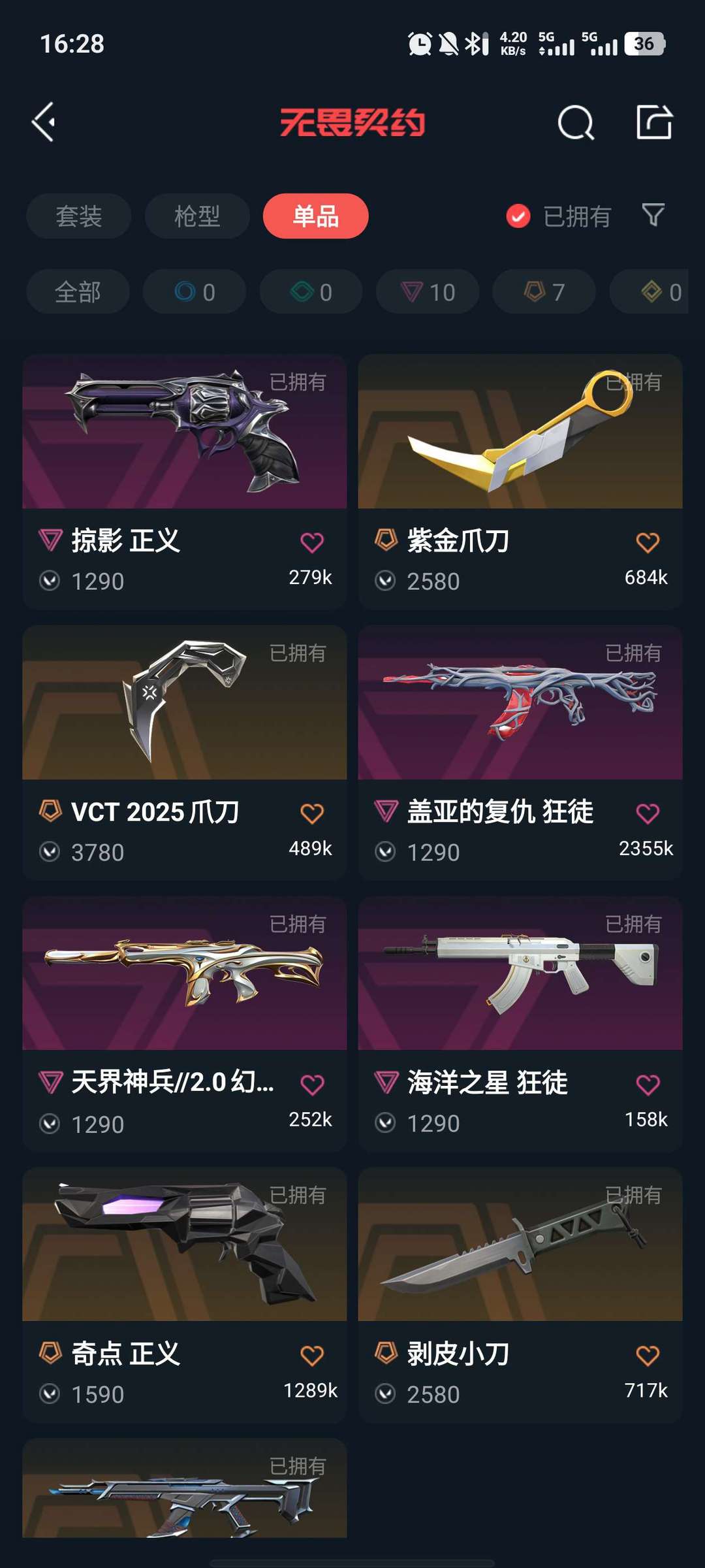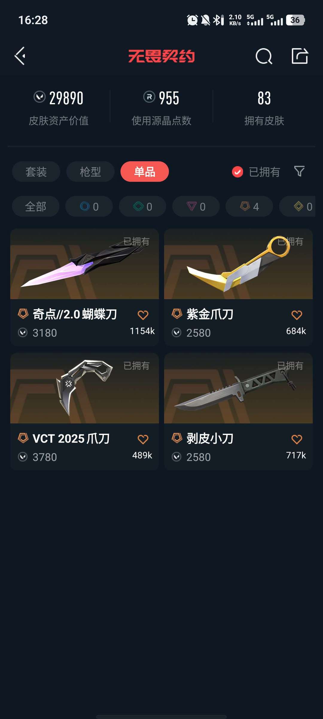 可排位,奇点蝴蝶刀,vct爪刀,剥皮小刀,紫金爪刀,4把ak,2把幻影