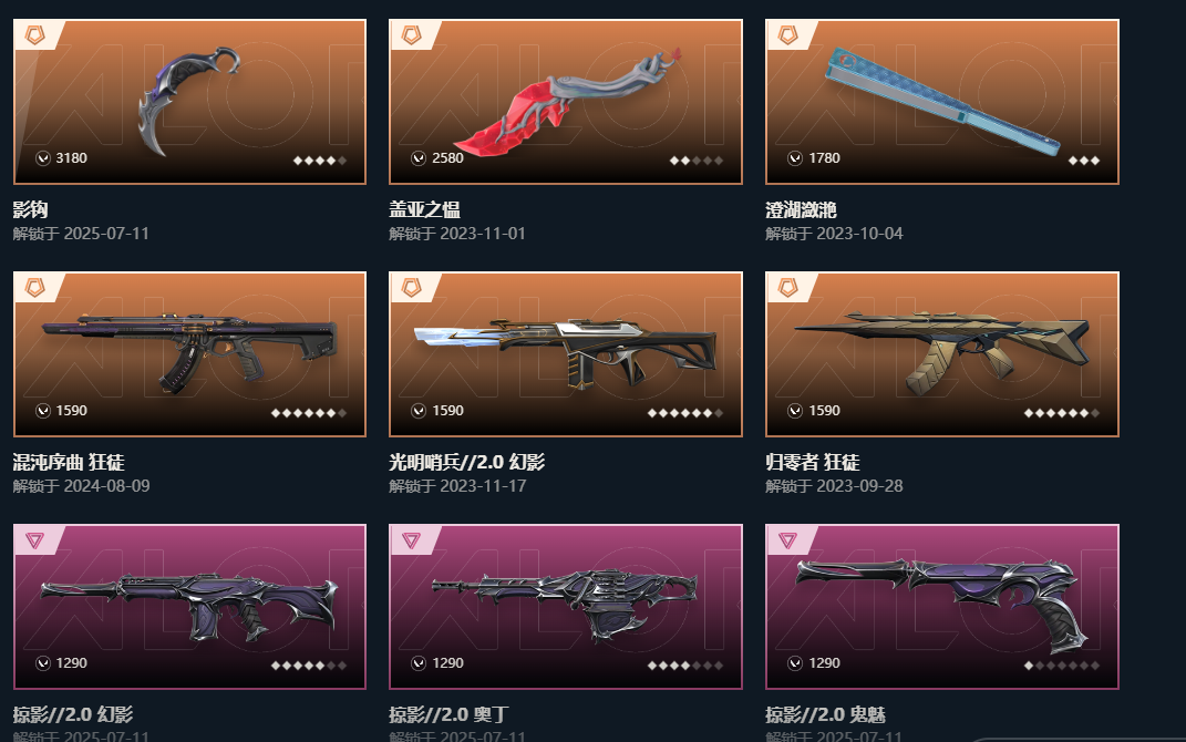 可排位,掠夺套,混沌ak,盖亚小刀,太极扇,异星ak,天界鬼魅,紫金骇灵。