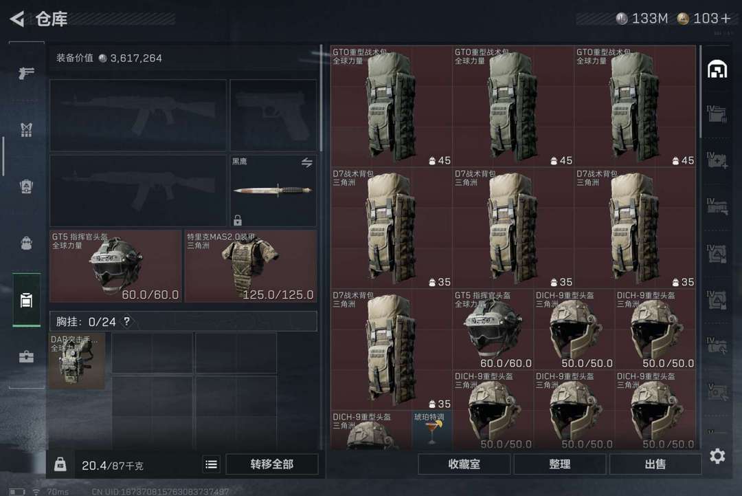 千万哈夫币 唐人号爆率高 ♥露娜麦小雯红皮♥1.33亿哈佛币♥ 六格保险♥ 满级体力满级负重