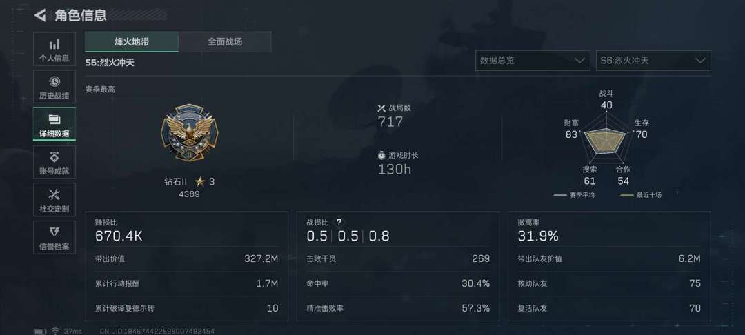 皮肤号 露娜红皮,部门满级,特勤处除潜水中心满级,绝密kd0.8机密0.5普通0.5,绑定物、钥匙随意用。