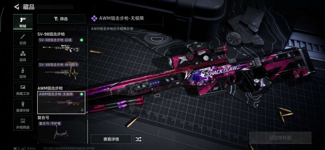 装备描述:红狼饰金玫瑰,SCAR-H电玩小子,AWM无极限,不能卖我收藏室里的东西,此号公安备案,损坏财产必追究
