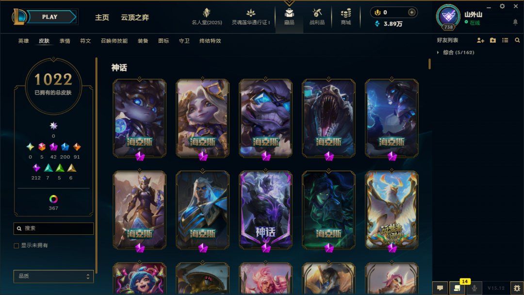 ██ 全英雄 2000皮丨50神话丨可排位丨龙瞎丨莲华套丨情人节套丨玉剑男刀丨冰雪皎月丨穿星创星