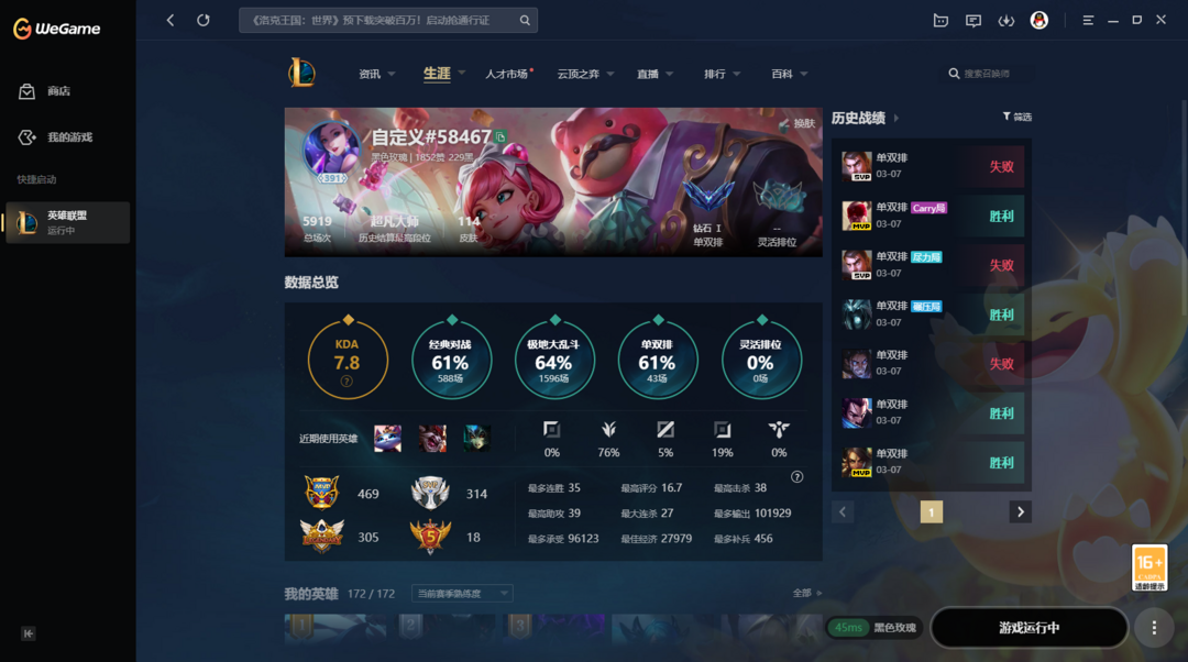 限制: 撤单率<50%才可租用此帐号英雄: 172