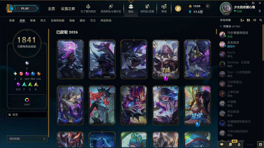 禁排位1841原皮顶级号商城清空新皮秒⚡满神话幻想4圣堂双殿堂签名版⚡马年全套龙瞎莲花卡尔玛冰原酒桶