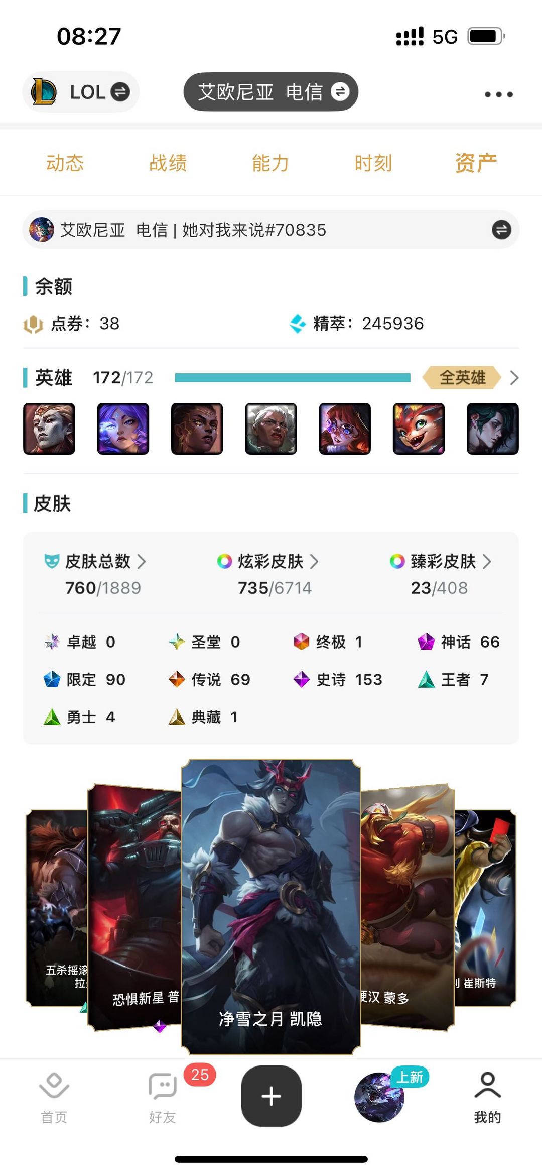 [艾欧尼亚]700场钻石2可排位⭐️原皮766⭐️炫彩734⭐️段位真实描述