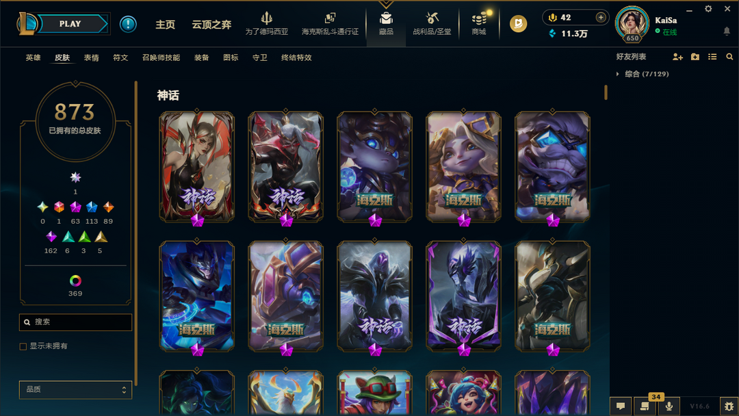 ██ 全英雄 1800皮丨70神话丨可排位丨殿堂卡莎丨女帝格温丨神龙李青丨山海莉莉娅丨泳池女警佐伊
