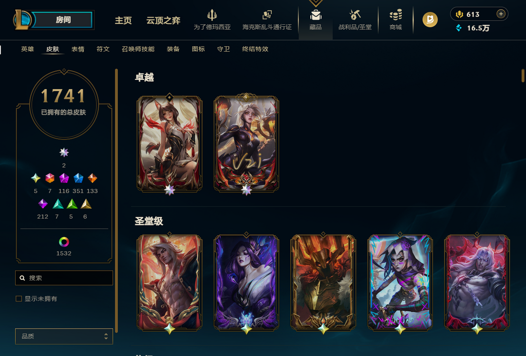 1740+全圣堂8神话幻想❤️3档卡莎❤️金克斯全炫❤️海魔剑魔心悦臻彩❤️女用臻彩多❤️3手办头