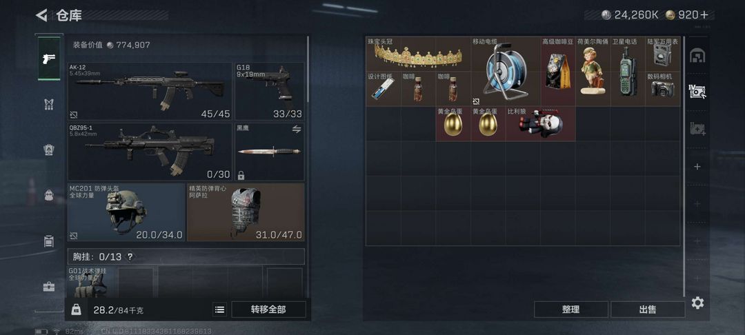 千万哈夫币 2400W 纯币,满体 6 负 和 3 件 6 甲一个 6 头