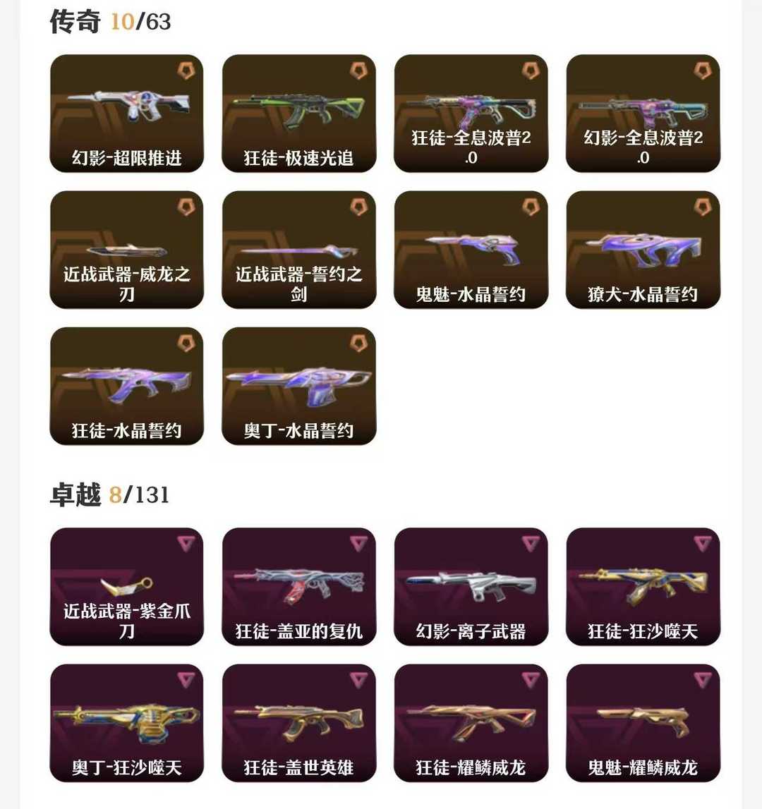 观察期10传奇8卓越,水晶全套,紫金刀,威龙刀,超限幻影,极速狂徒,全息狂徒,盖亚狂徒,离子幻影