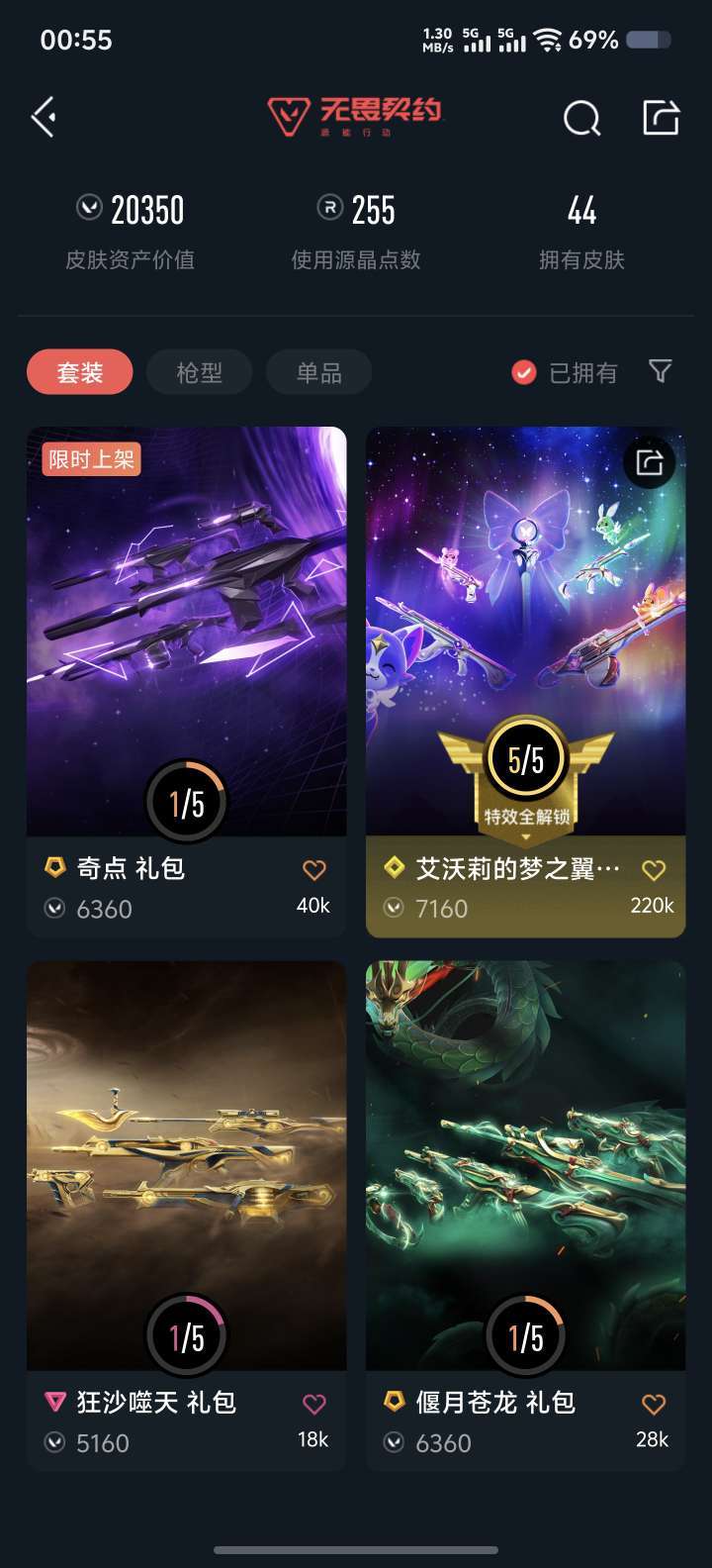 有44个枪皮,一整套猫猫,青龙AK,奇点幻影