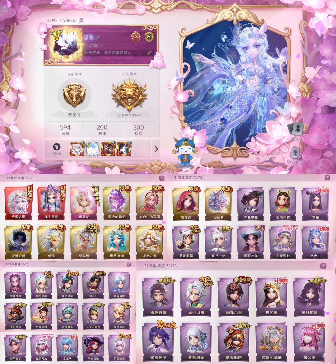 限制: 撤单率<50%才可租用此帐号装备描述:已设置二级密码,无法出售金色回收物(金色以下可以卖),定期会往号上补充铲铲币 安卓ios均可登录,恶意撤单、滥用金砖、改id、恶意发言等不文明行为永久拉黑 一单一密保证中途不会挤号,祝游戏愉快~ 禁止使用外挂、恶意发言、用号行骗,若因此类行为导致禁言、封号的,平台提取租客实名地址,必定会立案追责,并根据账号价值全额赔偿。 账号情况: 全套炽天使 镜生遗梦池子抽满 6金皮:血色中的玛丽/遗失的童话/圣光之谕/莲华渡/镜花辞/渡鸦公爵 s1-s6魔盒:青丘一梦 赤炼将军 黑月挽歌 王子与骑士 绣春逍影 莓果陷阱 故宫(瑞羽衔春 泽引山海 霓裳踏雪 灵昭鹿鸣)青花瓷(素影瑶光 青云逸歌) 叶罗丽(情公主 冰公主 白光莹 罗丽 水王子)捉妖奇妙夜(迷途僵宝 除妖小师妹) 露比联动时装:绒绒对决 甜梦派对 非遗摊戏:搬开山 先锋小姐 异色序曲/呱呱雨衣/丝缕哀歌