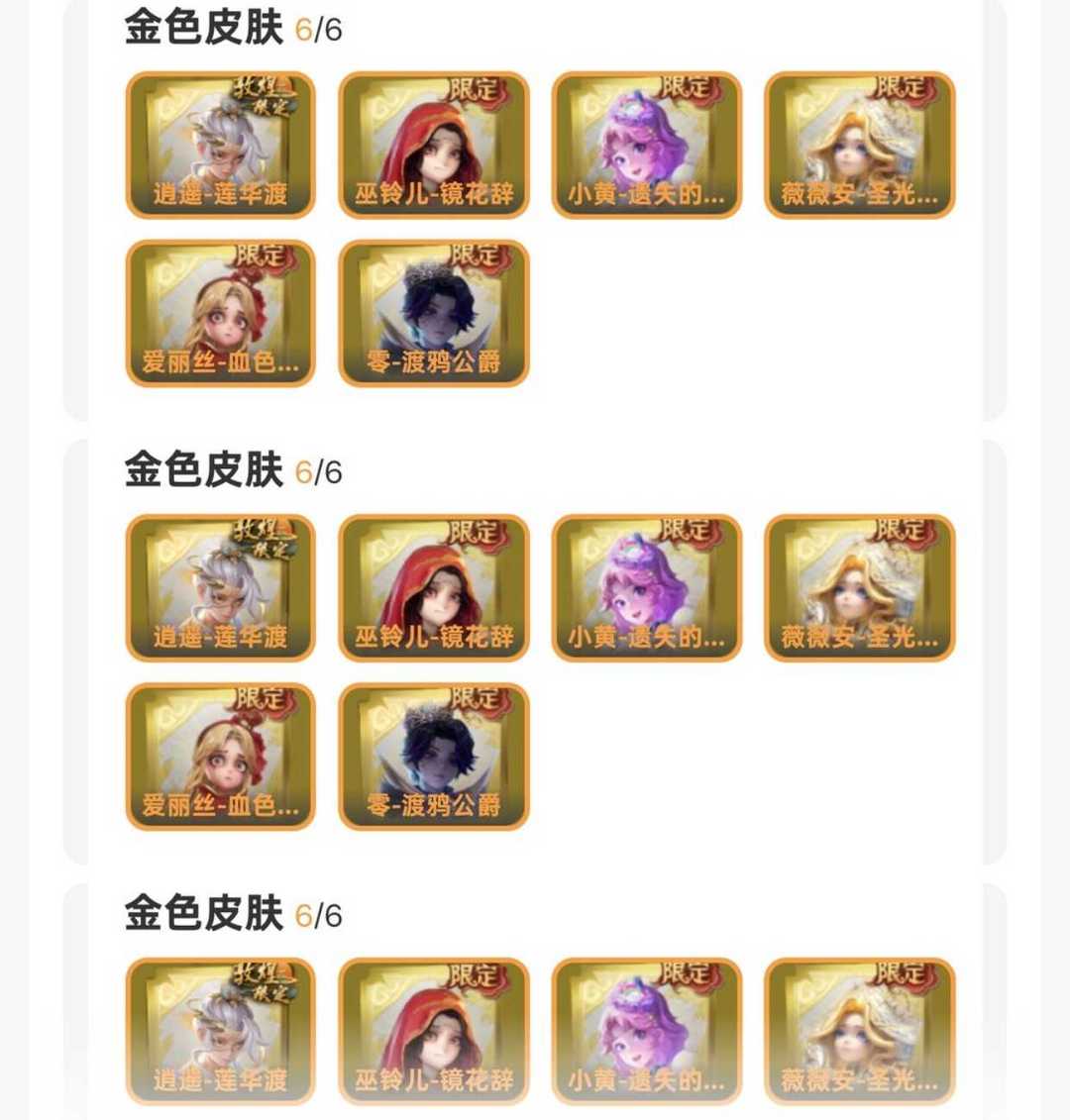 【免二级密码支持自己卖回收物】♥6金皮♥渡鸦公爵♥莲华渡♥玛丽童话圣光♥镜花辞♥