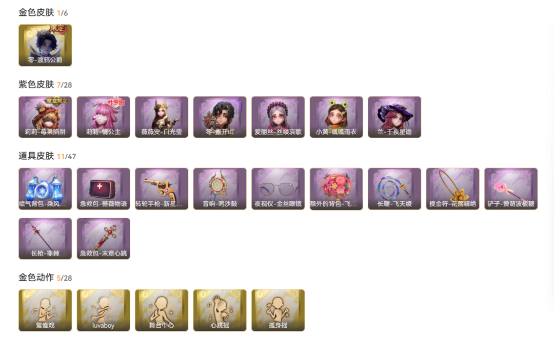 渡鸦公爵 零 新金皮 呱呱雨衣 情公主 白光莹 搬开山 千夜星谕 赞萌波板糖 铲子 长鞭 飞天绫