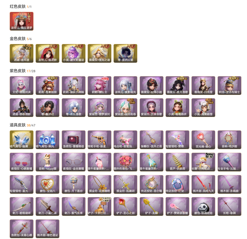限制: 撤单率<20%才可租用此帐号装备描述:皮肤:巫铃儿-镜生遗梦,巫铃儿-镜花辞,小黄-遗失的童话,逍遥-莲华渡,零-渡鸦公爵,薇薇安-圣光之谕,艾伦-绒绒对决,逍遥-绣春逍影,巫铃儿-素影瑶光,阿念-王子与骑士,莉莉-除妖小师妹,零-青云逸歌,莉莉-莓果陷阱,爱丽丝-丝缕哀歌,爱丽丝-甜梦派对,零-搬开山,薇薇安-黑月挽歌,薇薇安-白光莹,莉莉-情公主,爱丽丝-瑞羽衔春,小黄-呱呱雨衣,小黄-霓裳踏雪,薇薇安-仙锋小姐;道具:喷气背包-晶澜灵翼,电击枪-甜蜜泡泡枪,额外的背包-飞花令,铲子-赞萌波板糖,桃木剑-永眠曲,黄牛能量饮料-青玉抱丹,转轮手枪-新星时代,短管猎枪-赞萌露比水枪,桃木剑-凤鸣九天,腰包-惊魂娃娃,桃木剑-绯色遗证,夜视仪-心跳眼镜,摸金符-祝祷词,音响-鸣沙鼓,葫芦-伏妖塔,夜视仪-金丝眼镜,铲子-卡皮巴拉小黄豚铲,传送按钮-昆仑镜,刺刀-碧络琅环,腰包-宝剑八,摸金符-花落精绝,铲子-圣心之泪,传送按钮-幻宠之门,荧光棒-桃心-荧光棒-桃心,长鞭-小狗蛇点点鞭,腰包-月下莲台,急救包-蔷薇物语,铲子-龙鳞,刺刀-小鲨匕首,刺刀-紫气东来,长枪-罪棘,黄牛能量饮料-珍珠芭乐莓莓,喷气背包-乘风溯雪,音响