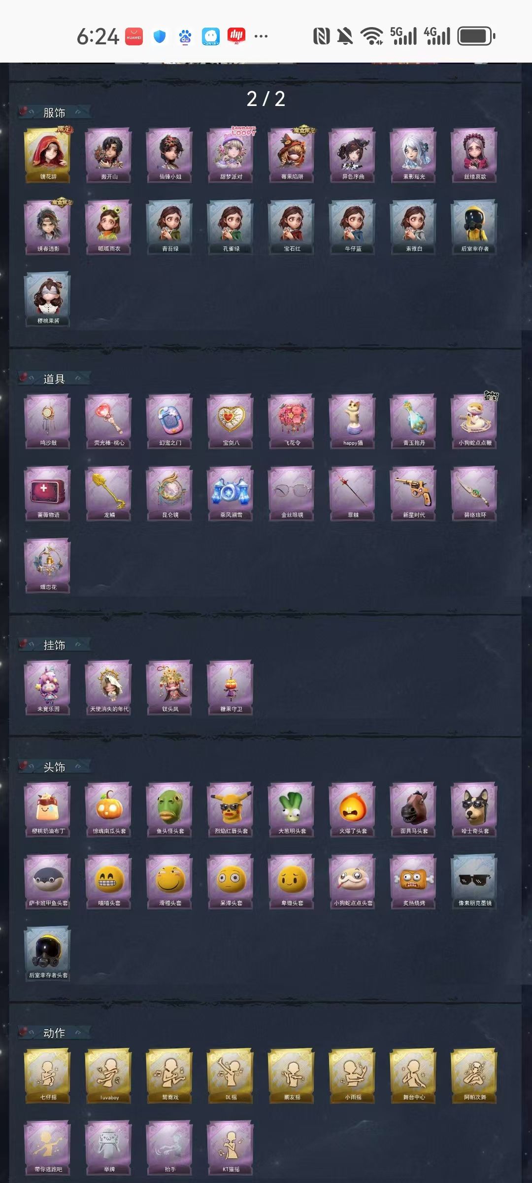 装备描述:【金色皮肤】巫铃儿-镜花辞 【紫色皮肤】零-搬开山、薇薇安-仙锋小姐、爱丽丝-甜梦派对、莉莉-莓果陷阱、小黄-异色序曲、巫铃儿-素影瑶光、爱丽丝-丝缕哀歌、逍遥-绣春逍影、小黄-呱呱雨衣 【道具皮肤】音响-鸣沙鼓、传送按钮-幻宠之门、腰包-宝剑八、额外的背包-飞花令、音响-happy猫、黄牛能量饮料-青玉抱丹、长鞭-小狗蛇点点鞭、腰包-私藏的银河、急救包-蔷薇物语、铲子-龙鳞、传送按钮-昆仑镜、喷气背包-乘风溯雪、夜视仪-金丝眼镜、转轮手枪-新星时代、刺刀-碧络琅环、背饰-蝶恋花