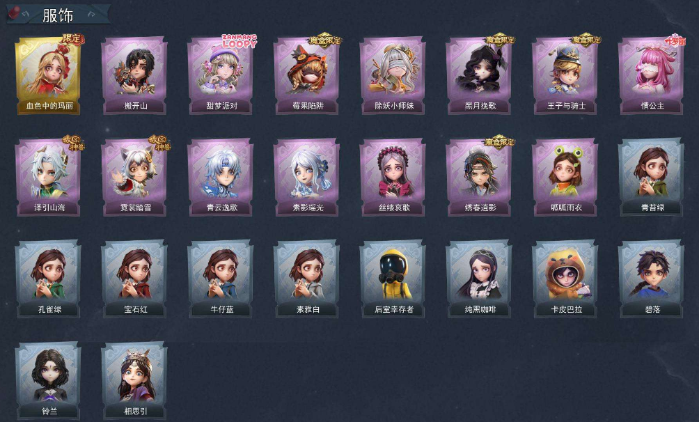 双字 id[1 金 14 紫] 爱丽丝-血色中的玛丽,逍遥-泽引山海,薇薇安-黑月挽歌,莉莉-全皮