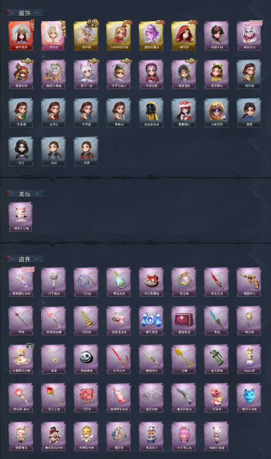 限制: 撤单率<50%才可租用此帐号装备描述:【幻梦皮肤】巫铃儿-镜生遗梦 【金色皮肤】小黄-炽天使,逍遥-莲华渡、爱丽丝-血色中的玛丽、小黄-遗失的童话、巫铃儿-镜花辞 【紫色皮肤】薇薇安-仙锋小姐、艾伦-绒绒对决、莉莉-莓果陷阱、莉莉-除妖小师妹、小黄-青丘一梦、阿念-王子与骑士、爱丽丝-丝缕哀歌、逍遥-绣春逍影、小黄-呱呱雨衣 【道具皮肤】短管猎枪-赞萌露比水枪、腰包-月下莲台、长鞭-飞天绫、黄牛能量饮料-青玉抱丹、腰包-绯红柴郡猫、传送按钮-昆仑镜、刺刀-赤色之刃、转轮手枪-新星时代、铲子-赞萌波板糖、葫芦-伏妖塔、电击枪-甜蜜泡泡枪、喷气背包-乘风溯雪、急救包-蔷薇物语、刺刀-青瓷、音响-鸣沙鼓、长鞭-小狗蛇点点鞭、摸金符-紫霄、腰包-惊魂娃娃、桃木剑-凤鸣九天、刺刀-碧络琅环、铲子-龙鳞、闪光弹-金戈玄铜、音响-happy猫、铲子-圣心之泪、额外的背包-飞花令、黄牛能量饮料-珍珠芭乐莓莓、夜视仪-金丝眼镜、短管猎枪-星光的裁决、背饰-班卓琴、背饰-潮汐小海兔、背饰-梵音莲华、背饰-兔先生的时钟、背饰-天使的呼唤、背饰-蝶恋花、背饰-毛球夹子 【美妆】暗夜小恶魔 【载具】惊奇万圣涂装 【头饰】太空鲨头套、雪墩墩头套、樱桃