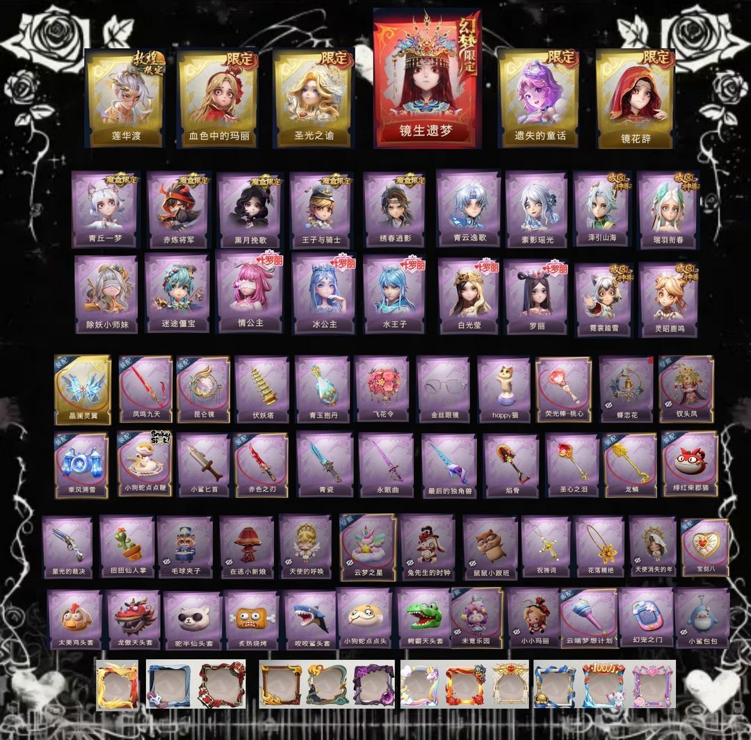 限制: 撤单率<50%才可租用此帐号装备描述:【累充】79770金砖 【赛季魔盒】稀世豪华魔盒 【员工】小黄、爱丽丝、零、阿念、逍遥、薇薇安、巫铃儿、莉莉、艾伦、爱德华、兰、小满 【幻梦皮肤】巫铃儿-镜生遗梦 【星耀限定皮肤】小黄-炽天使 【金色皮肤】小黄-炽天使、莉莉-瑶台梦、零-渡鸦公爵、逍遥-莲华渡、薇薇安-圣光之谕、爱丽丝-血色中的玛丽、小黄-遗失的童话、巫铃儿-镜花辞 【紫色皮肤】艾伦-黎明猎手、阿念-庆宴绮愿、爱丽丝-耀眼的你、兰-千夜星谕、零-搬开山、薇薇安-仙锋小姐、爱丽丝-甜梦派对、艾伦-绒绒对决、莉莉-莓果陷阱、阿念-迷途僵宝、莉莉-除妖小师妹、零-赤炼将军、薇薇安-黑月挽歌、小黄-青丘一梦、阿念-王子与骑士、莉莉-情公主、艾伦-水王子、爱丽丝-冰公主、小黄-罗丽、薇薇安-白光莹、逍遥-泽引山海、阿念-灵昭鹿鸣、爱丽丝-瑞羽衔春、小黄-霓裳踏雪、零-青云逸歌、巫铃儿-素影瑶光、爱丽丝-丝缕哀歌、逍遥-绣春逍影、小黄-呱呱雨衣 【道具皮肤】喷气背包-晶澜灵翼、闪光弹-金戈玄铜、长鞭-小狗蛇点点鞭、传送按钮-浮生一梦、折扇-赴此良宵、刺刀-碧络琅环、音响-冬夜暖忆、腰包-月下莲台、音响-鸣沙鼓、桃木剑-永眠曲、传送