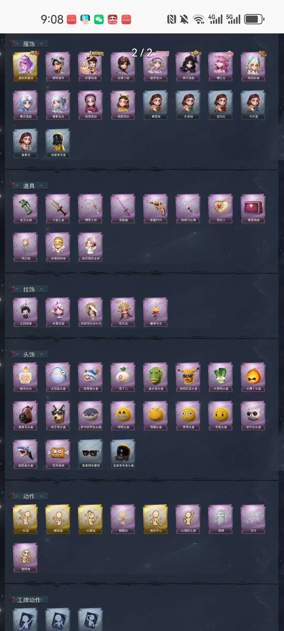 装备描述:【金色皮肤】小黄-遗失的童话 【紫色皮肤】艾伦-黎明猎手、阿念-庆宴绮愿、薇薇安-仙锋小姐、爱丽丝-甜梦派对、薇薇安-黑月挽歌、莉莉-情公主、爱丽丝-瑞羽衔春、零-青云逸歌、巫铃儿-素影瑶光、爱丽丝-丝缕哀歌、小黄-呱呱雨衣 【道具皮肤】闪光弹-金戈玄铜、刺刀-小鲨匕首、长鞭-缚誓之锁、桃木剑-永眠曲、转轮手枪-新星时代、刺刀-铂刺与红萼、腰包-宝剑八、急救包-蔷薇物语、音响-鸣沙鼓、背饰-天使的呼唤、背饰-炽天使的余烬