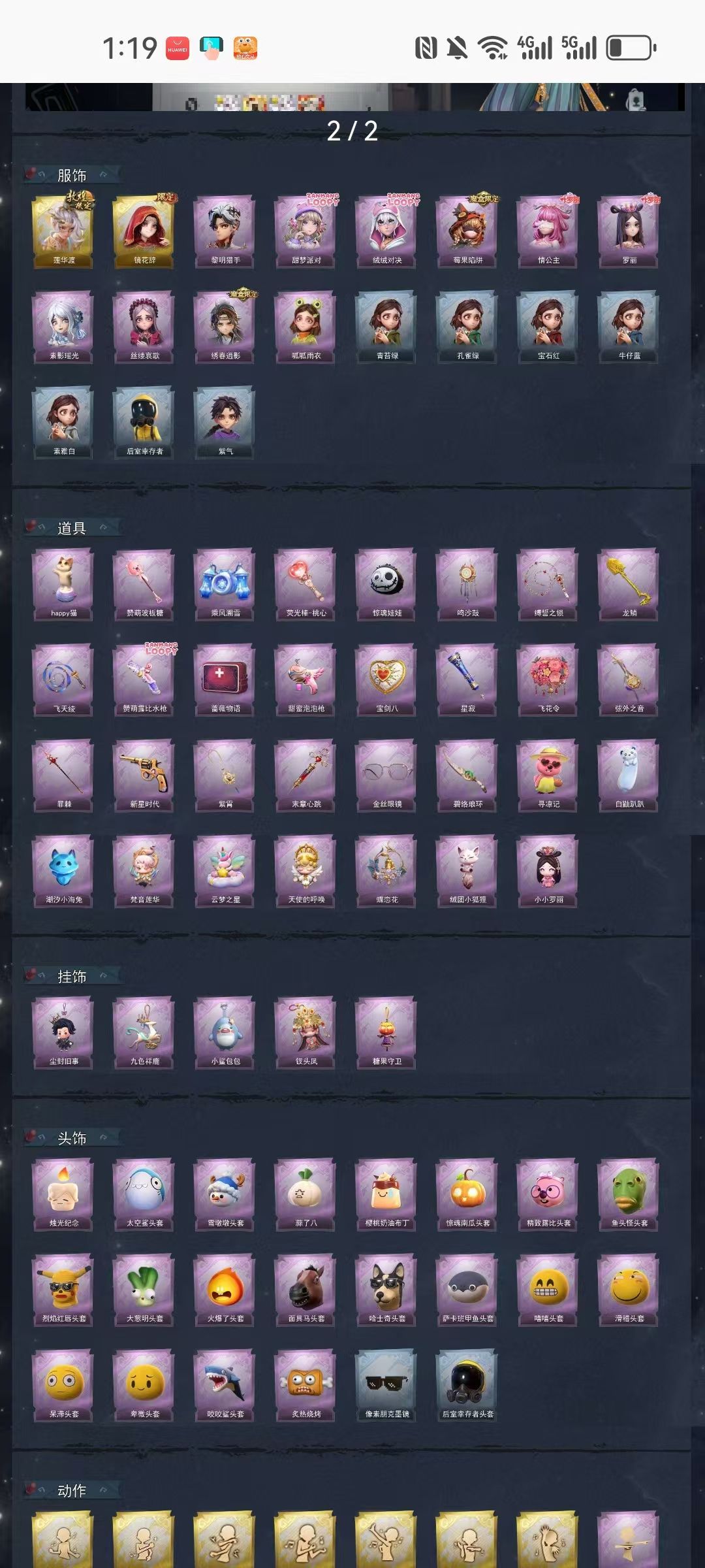 装备描述:【金色皮肤】逍遥-莲华渡、巫铃儿-镜花辞 【紫色皮肤】艾伦-黎明猎手、爱丽丝-甜梦派对、艾伦-绒绒对决、莉莉-莓果陷阱、莉莉-情公主、小黄-罗丽、巫铃儿-素影瑶光、爱丽丝-丝缕哀歌、逍遥-绣春逍影、小黄-呱呱雨衣 【道具皮肤】音响-happy猫、铲子-赞萌波板糖、喷气背包-乘风溯雪、腰包-惊魂娃娃、音响-鸣沙鼓、长鞭-缚誓之锁、铲子-龙鳞、长鞭-飞天绫、短管猎枪-赞萌露比水枪、急救包-蔷薇物语、电击枪-甜蜜泡泡枪、腰包-宝剑八、专业手电-星寂、额外的背包-飞花令、除颤仪-弦外之音、转轮手枪-新星时代、摸金符-紫霄、急救包-末章心跳、夜视仪-金丝眼镜、刺刀-碧络琅环、背饰-寻凉记、背饰-白鼬趴趴、背饰-潮汐小海兔、背饰-梵音莲华、背饰-云梦之星、背饰-天使的呼唤、背饰-蝶恋花 【头饰】太空鲨头套、雪墩墩头套、蒜了八、樱桃奶油布丁、惊魂南瓜头套、精致露比头套、鱼头怪头套、烈焰红唇头套、大葱明头套、火爆了头套、面具马头套、哈士奇头套、萨卡班甲鱼头套、嘻嘻头套、滑稽头套、呆滞头套、卑微头套、咬咬鲨头套、炙热烧烤、像素朋克墨镜、后室幸存者头套