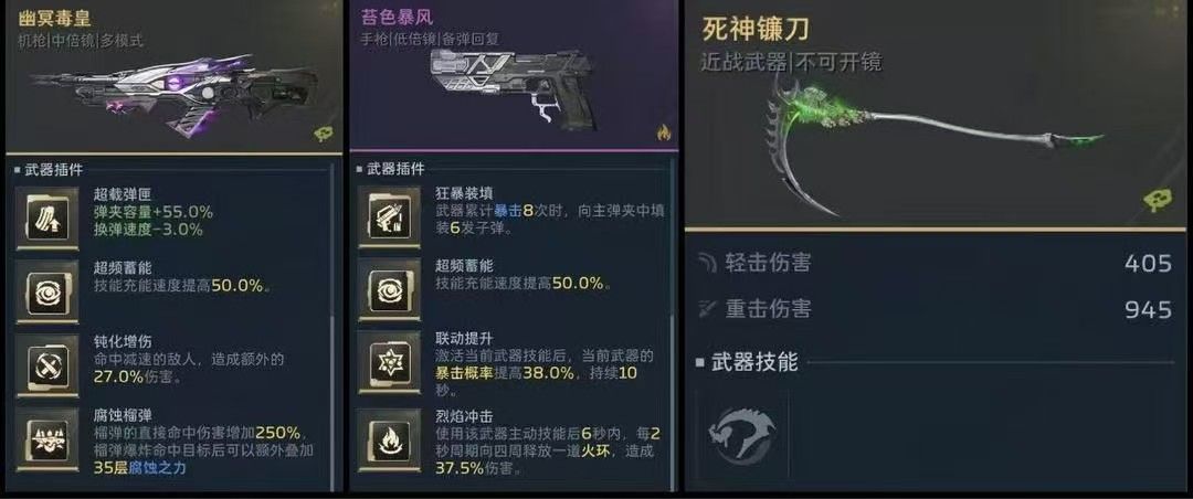 幽冥毒皇,钢铁轰鸣,死神猎手一眩紫狂潮,纯白至上;【传说近战】:死神镰刀,死亡之拥