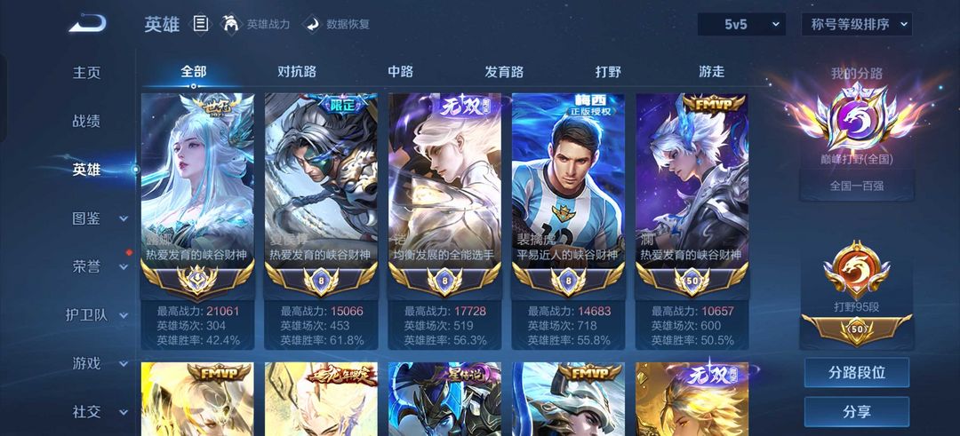 在榜小国老虎省韩信❤禁巅峰千强2256分路百强打野❤️历史十国服打野95段❤️2w1露娜