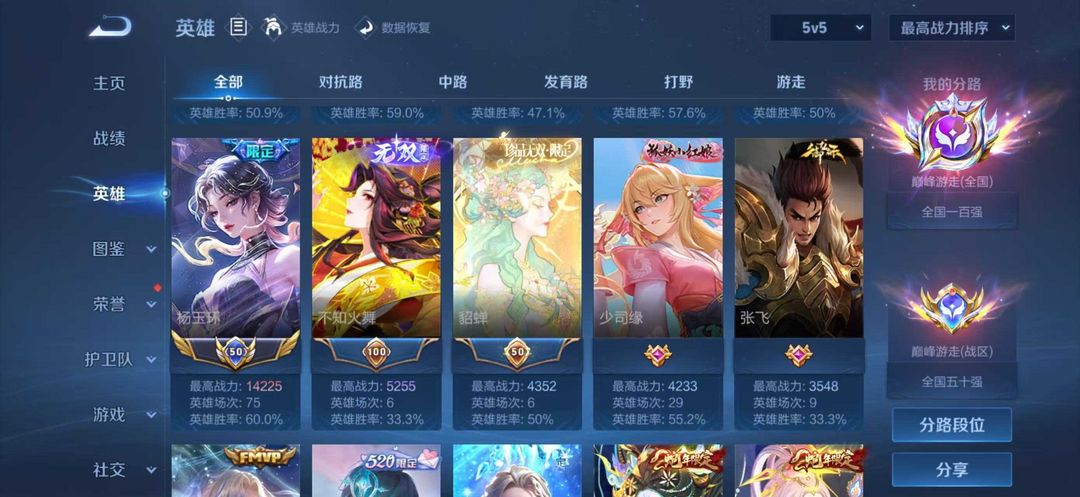 在榜省西施小乔杨玉环大乔❤禁巅峰万强2247❤历史7国服1.9大乔全国巅峰游走❤可排