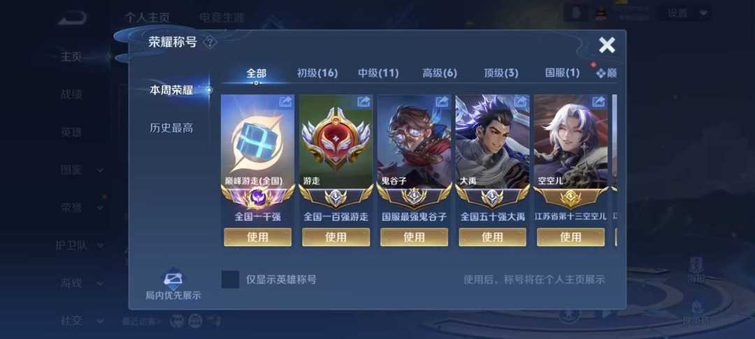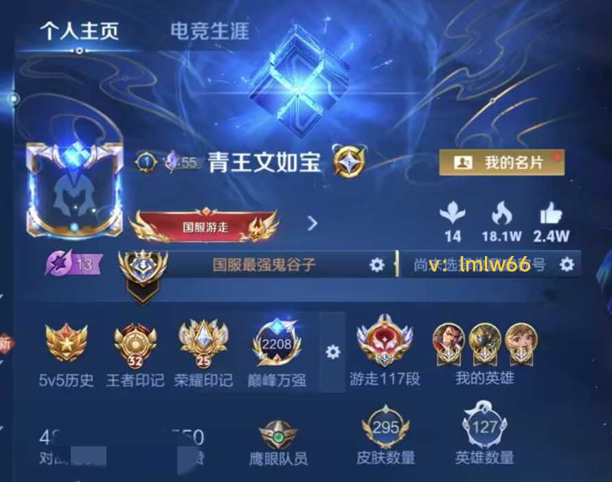 (禁巅峰)正式服大国标鬼谷子50强大禹⭐117段游走国服游走称号⭐巅峰2221游走千强框⭐可排位禁巅